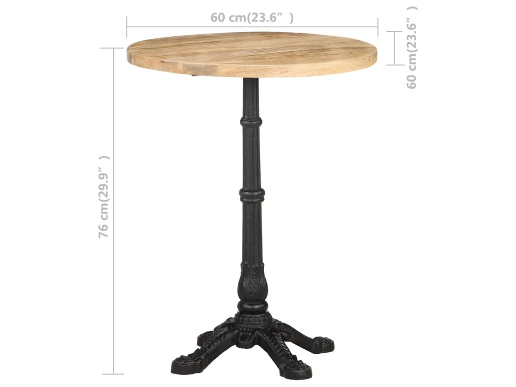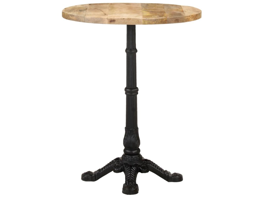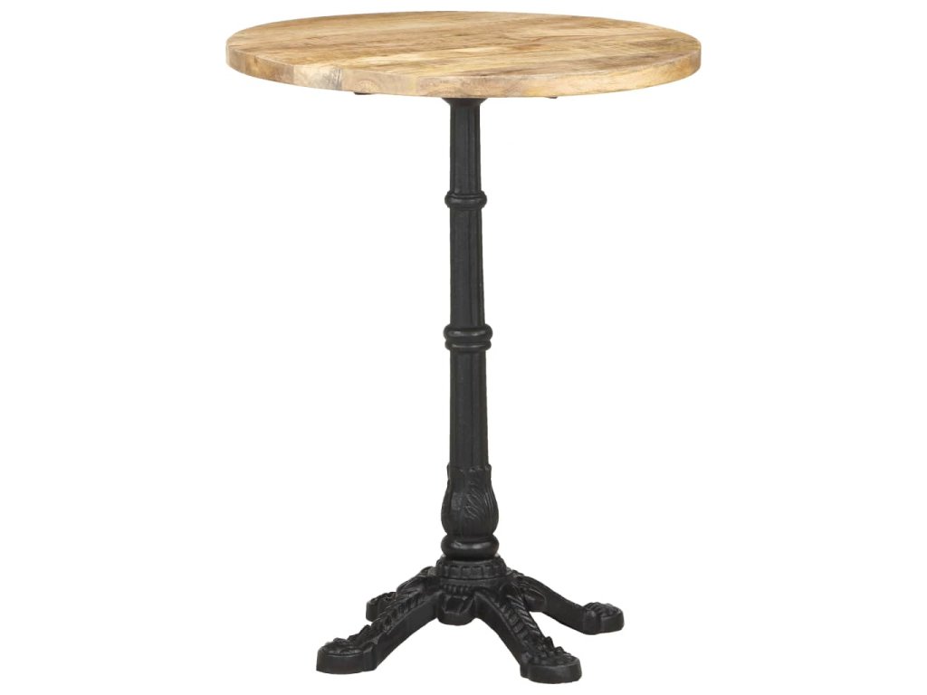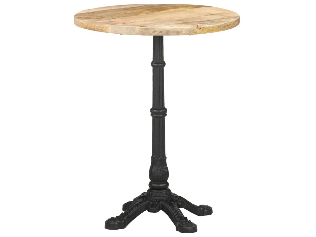 Stolní deska je vyrobená z hrubého mangovníkového dřeva s přírodním povrchem. Jedná se o tropické tvrdé dřevo, které dokáže unést značnou váhu. Skvěle také odolává opotřebení a působení času, takže je stabilní a dlouho vydrží. Litinová základna zajišťuje výtečnou rovnováhu a pevnost. Tento jídelní stůl vám rovněž poslouží k odkládání nápojů či jiných věcí, které chcete mít vždy po ruce.