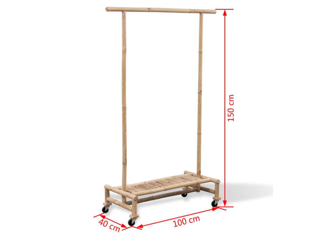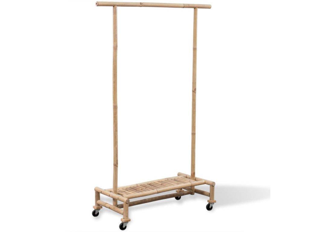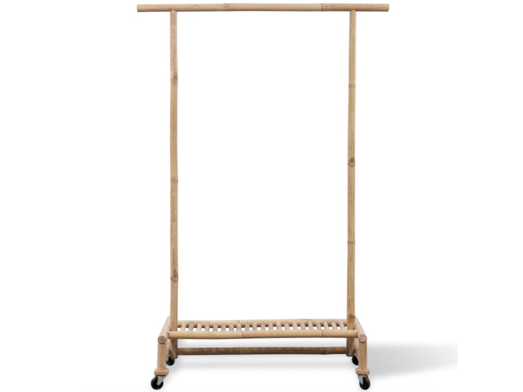 Tento bambusový věšák na šaty vám okamžitě poskytne praktický a přenosný úložný prostor k věšení oděvů. Robustní spodní police je určená k pohodlnému uspořádání vaší obuvi. Autentický odstín bambusu vnese do vašeho interiéru závan tropického kouzla.