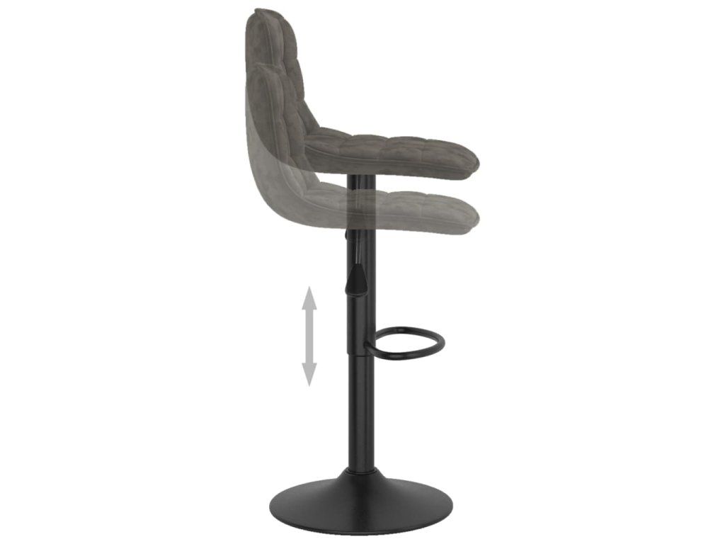 Tato barová židle je čalouněná měkkým sametem, který je příjemný na dotek, takže vám při sezení poskytne optimální komfort. Podstava z chromované oceli zaručuje mimořádnou odolnost, zatímco vestavěná opěrka na nohy vám zase zajistí pohodlnější posezení. Výšku barové židle snadno upravíte pomocí mechanismu s plynovým pístem. Barová židlička představuje dokonalý doplněk do každého funkčního baru či jídelny. Židle se navíc otáčí o 360 stupňů, což jí dodává skvělou flexibilitu.