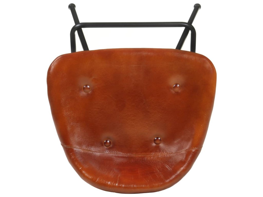 - Materiál: pravá kozí kůže s hnědou povrchovou úpravou, práškově lakované železo