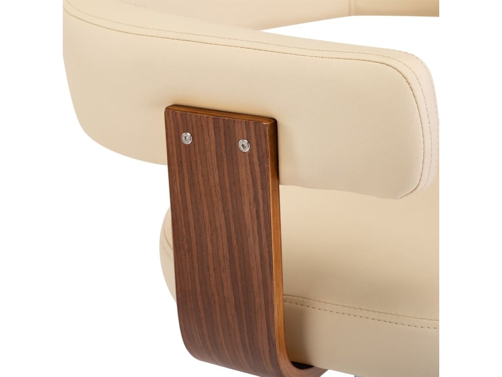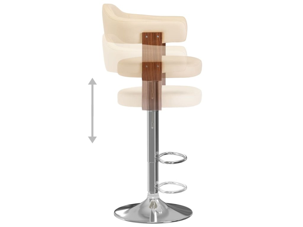 Tyto stoličky jsou čalouněné umělou kůží a pohodlně polstrované. Ohýbané dřevo a železný rám zajišťují vysokou pevnost a stabilitu a také přispívají k výjimečnému vzhledu a stylu. Vestavěná podnožka a ergonomický design zajišťují pohodlné sezení. Díky zvedacímu mechanismu s plynovým pístem lze tyto otočné barové židle výškově nastavit a jsou dokonalým doplňkem každého funkčního baru nebo jídelny. Otáčí se o 360 stupňů, takže jsou vysoce flexibilní.