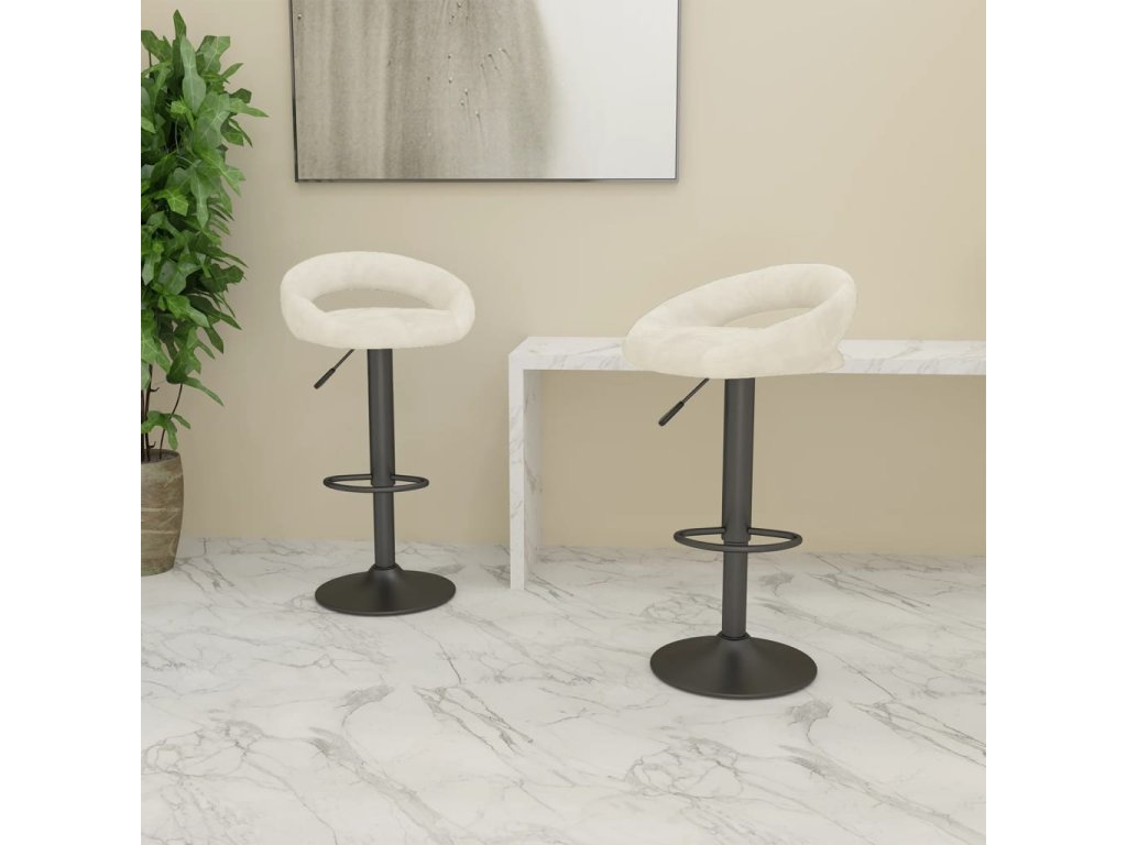 Židle jsou čalouněné měkkým sametem, který je příjemný na dotek a nabízí optimální komfort. Podstava z práškově lakované oceli zaručuje mimořádnou odolnost, zatímco vestavěná opěrka na nohy vám zase zajistí pohodlnější posezení. Výšku otočných barových židlí navíc snadno upravíte pomocí mechanismu s plynovým pístem. Barové židličky představují dokonalý doplněk do každého funkčního baru či jídelny.