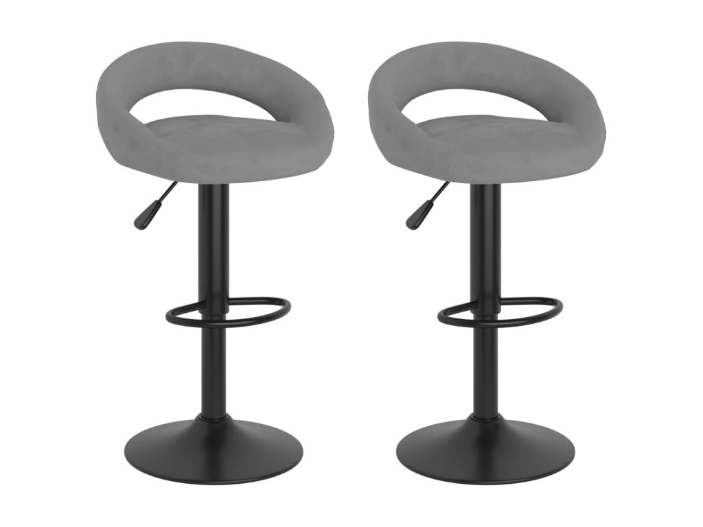 Židle jsou čalouněné měkkým sametem, který je příjemný na dotek a nabízí optimální komfort. Podstava z práškově lakované oceli zaručuje mimořádnou odolnost, zatímco vestavěná opěrka na nohy vám zase zajistí pohodlnější posezení. Výšku otočných barových židlí navíc snadno upravíte pomocí mechanismu s plynovým pístem. Barové židličky představují dokonalý doplněk do každého funkčního baru či jídelny.