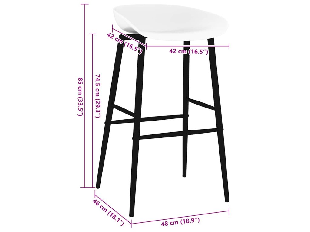 Barové židle mají ergonomicky tvarované sedadlo s integrovaným nízkým opěradlem. Jsou vyrobené z robustního PP materiálu a stojí na pevných práškově lakovaných kovových nohách, takže jsou robustní a odolné.
