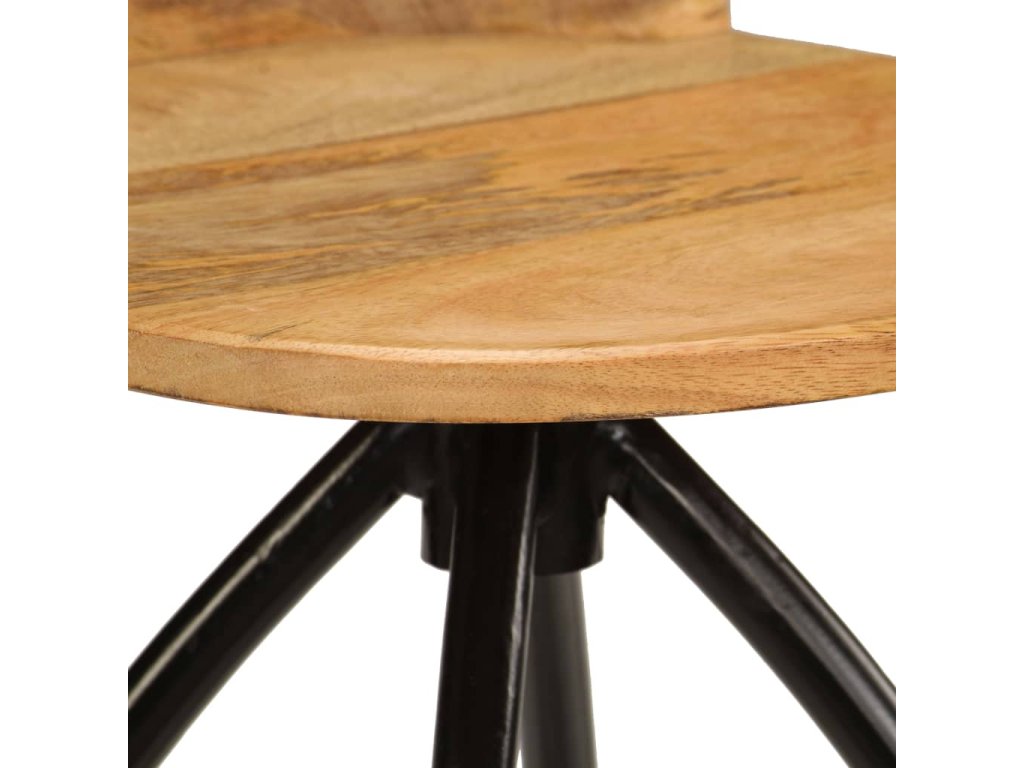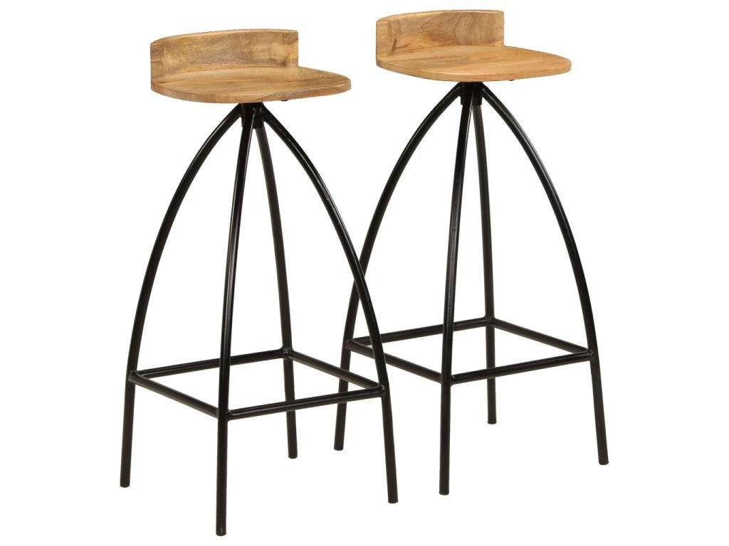 Barové židle jsou vyrobeny z masivního mangovníkového dřeva a pevného ocelového rámu, díky čemuž jsou velmi stabilní a odolné. Opěradla a opěrky nohou přispívají k pohodlnému sezení. Ocelové rámy zajišťují stabilitu židlí a přitom podtrhují jejich industriální styl. Každá fáze výrobního procesu je prováděna s největší pečlivostí, ať už se jedná o rekombinaci, leštění, natírání anebo lakování. Sestavení sady je snadné. Balení obsahuje 2 barové židle.