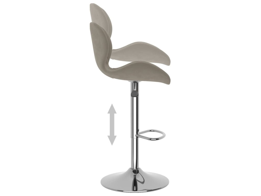 Barové židle jsou čalouněné na dotek měkkým sametem, který vám zajistí optimální pohodlí při sezení. Rám z chromované oceli zaručuje mimořádnou odolnost a stabilitu, zatímco vestavěná opěrka nohou vám zase přinese větší požitek ze sezení. Výšku otočné barové židle navíc snadno upravíte pomocí mechanismu s plynovým pístem. Barová židlička představuje dokonalý doplněk do každého funkčního baru či jídelny. Židle se také otáčí o 360 stupňů, což jí dodává skvělou flexibilitu.