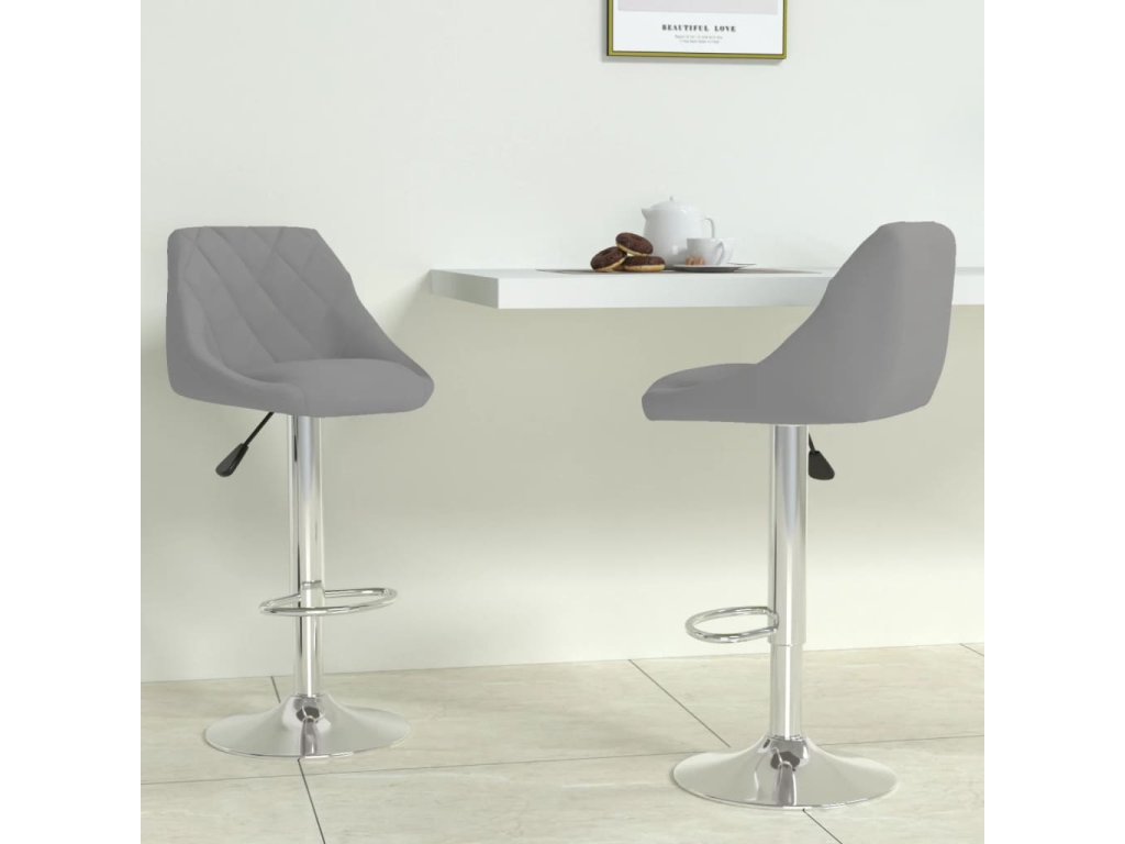 Tyto barové židle jsou čalouněné měkkým sametem, který je příjemný na dotek, a nabízí optimální komfort. Rám z chromované oceli zaručuje mimořádnou odolnost, zatímco vestavěná opěrka na nohy vám zajistí pohodlnější posezení. Výšku židlí snadno upravíte pomocí mechanismu s plynovým pístem. Barové stoličky představují dokonalý doplněk do každého funkčního baru či jídelny. Židle se navíc otáčí o 360 stupňů, což jim dodává skvělou flexibilitu.