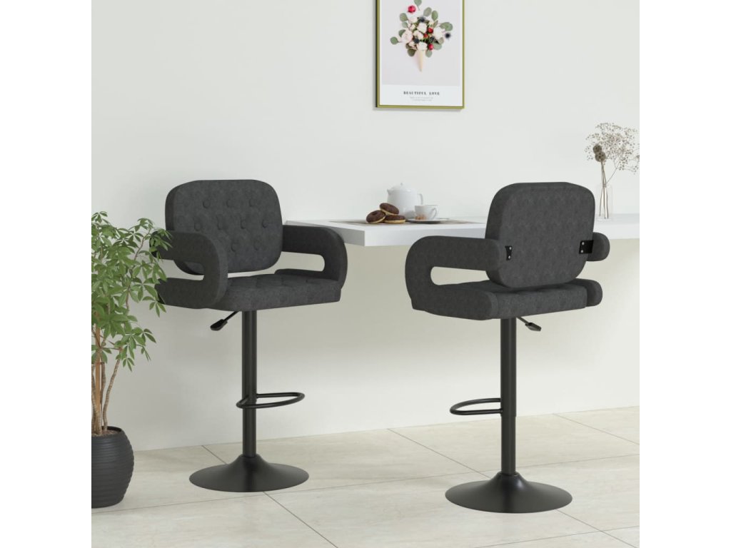 Barové židle jsou čalouněné pevnou látkou a poskytnou vám optimální komfort. Podstava z práškově lakované oceli zaručuje mimořádnou odolnost, zatímco vestavěná opěrka na nohy vám zase zajistí pohodlnější posezení. Výšku otočných barových židlí navíc snadno upravíte pomocí mechanismu s plynovým pístem. Barové židličky představují dokonalý doplněk do každého funkčního baru či jídelny.