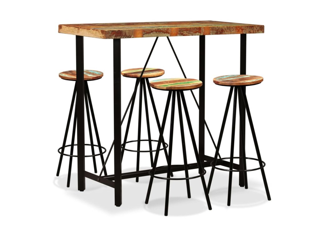 Barový stůl a stoličky jsou vyrobené z masivního recyklovaného dřeva, a tak mají vlastnosti různých dřevin, jako je teak, mangovníkové dřevo, akácie a další. Recyklované dřevo je pevné, stabilní, odolné a zároveň krásně vypadá. Známky opotřebení dodávají každému kusu nábytku na jedinečnosti a ocelové nohy umocňují jejich působivý industriální styl. Každá fáze výrobního procesu je prováděná s největší pečlivostí, ať už jde o sestavení, leštění, natírání anebo lakování.