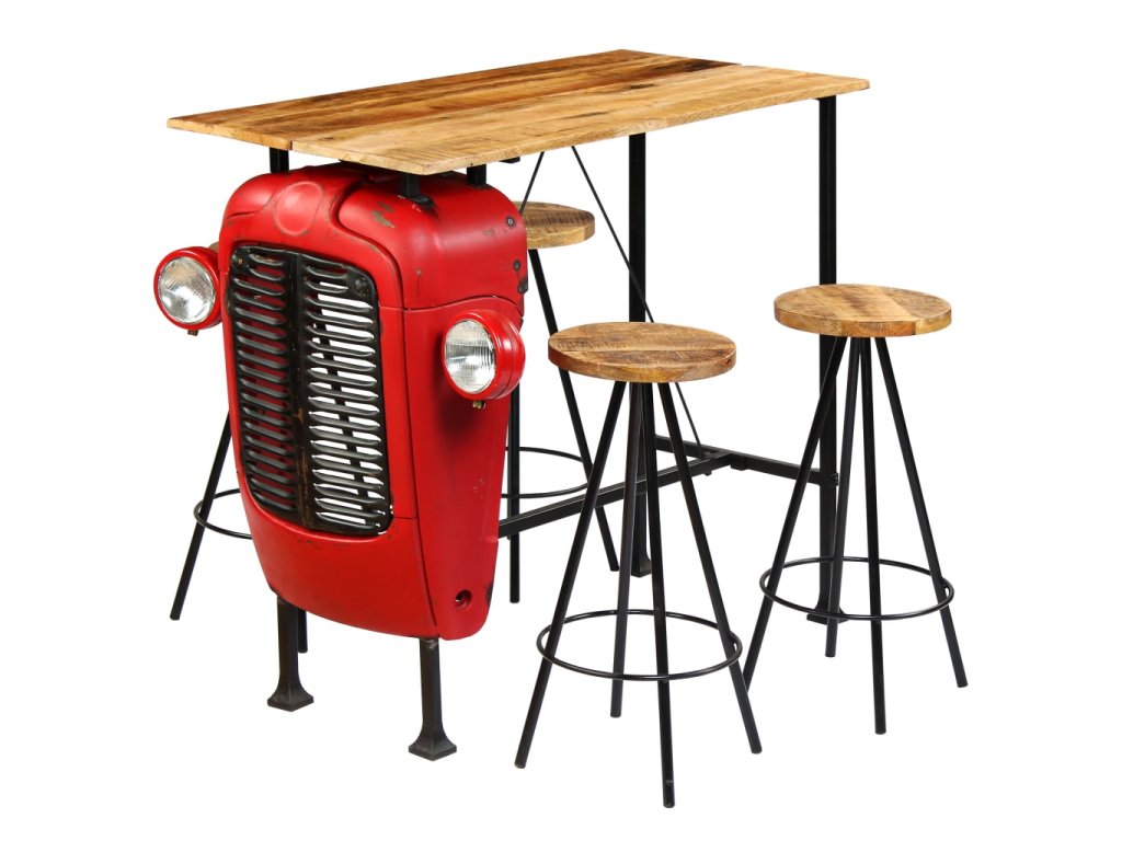 - Balení obsahuje 1 barový stůl s kapotou traktoru a 4 barové židle
