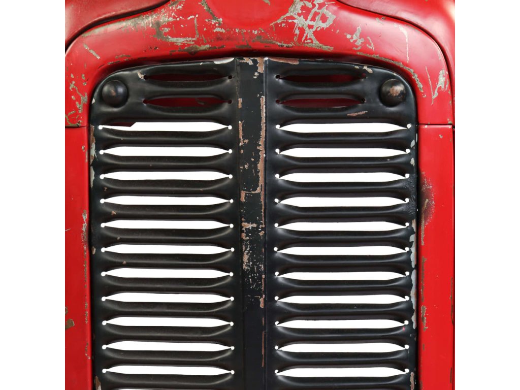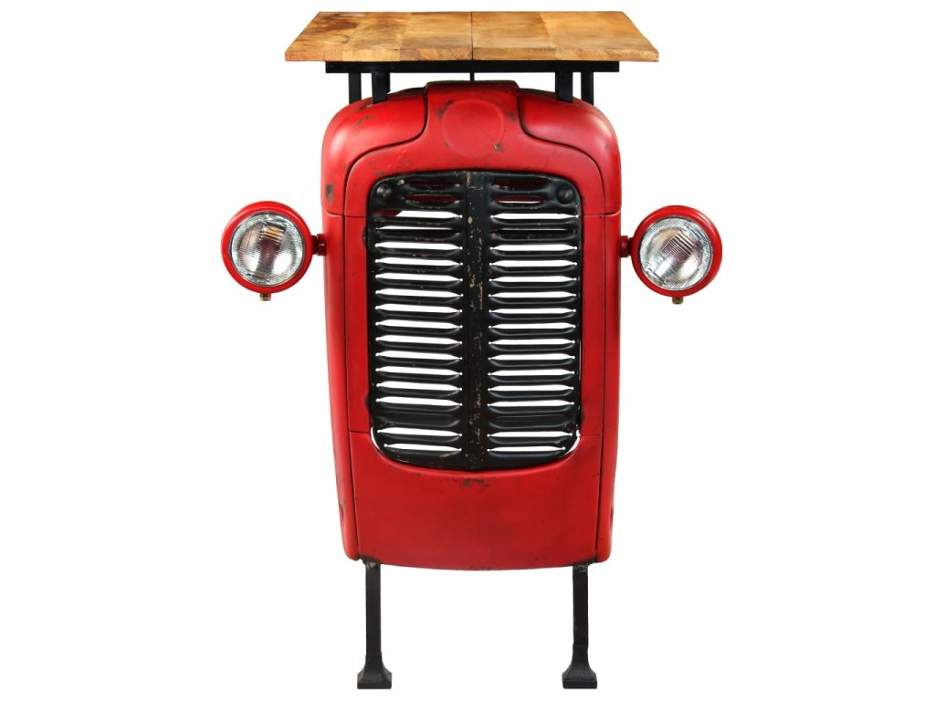 Barový set je zhotoven z masivního mangovníkového dřeva a oceli s práškovým nástřikem, díky čemuž je robustní a odolný. Nádherná kresba dřeva činí každý kus nábytku zcela jedinečným a lehce odlišným od ostatních. Kapota traktoru vypadá velice autenticky a ocelová konstrukce podtrhuje industriální styl barového stolu. Známky opotřebení na kapotě traktoru a struktura dřeva vypovídají o bohaté historii stolu a dodávají mu jedinečný vzhled. Každá fáze výrobního procesu je prováděna s největší pečlivostí, ať už se jedná o leštění, natírání anebo lakování. Montáž je snadná.