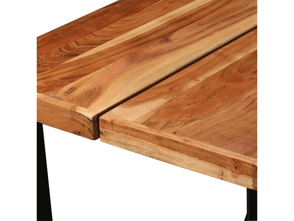 Barový stůl je vyrobený z masivního akáciového dřeva, které je odolné, stabilní a snadno se čistí. Stůl je celý ručně vyrobený a překrásná kresba dřeva dává každému kusu nábytku jeho jedinečný a od ostatních lehce odlišný charakter. Silné ocelové nohy přidávají stolu na stabilitě a odolnosti a navíc umocňují jeho působivý industriální styl.