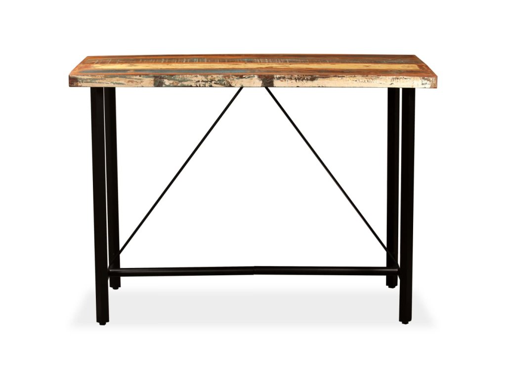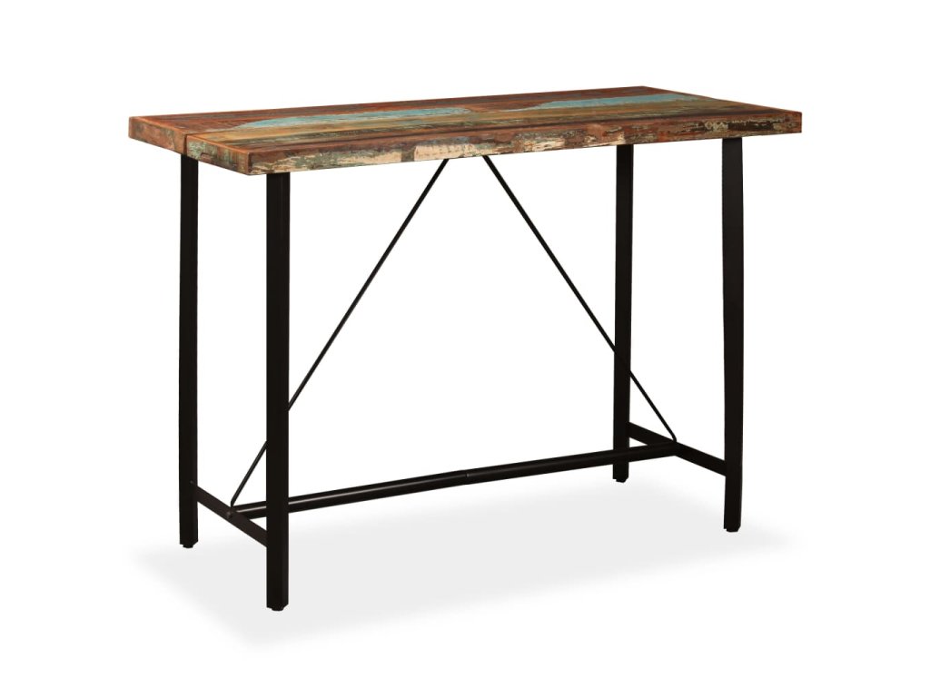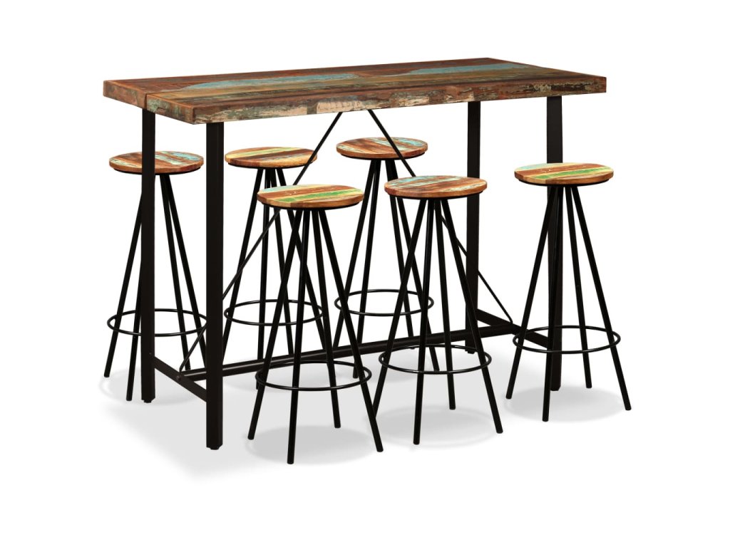 Barový stůl a stoličky jsou vyrobené z masivního recyklovaného dřeva, a tak mají vlastnosti různých dřevin, jako je teak, mangovníkové dřevo, akácie a další. Recyklované dřevo je pevné, stabilní, odolné a zároveň krásně vypadá. Známky opotřebení dodávají každému kusu nábytku na jedinečnosti a ocelové nohy umocňují jejich působivý industriální styl. Každá fáze výrobního procesu je prováděná s největší pečlivostí, ať už jde o sestavení, leštění, natírání anebo lakování.
