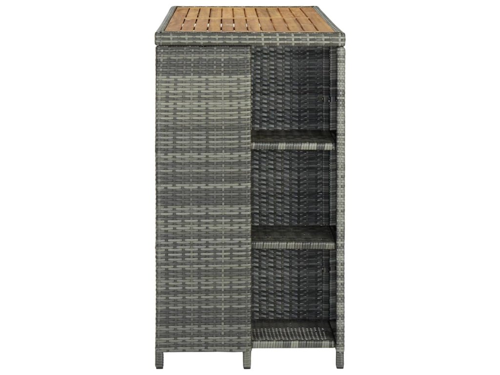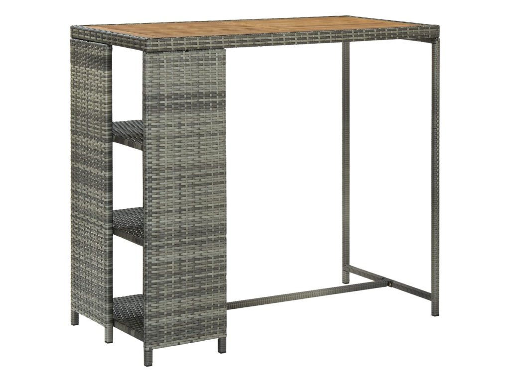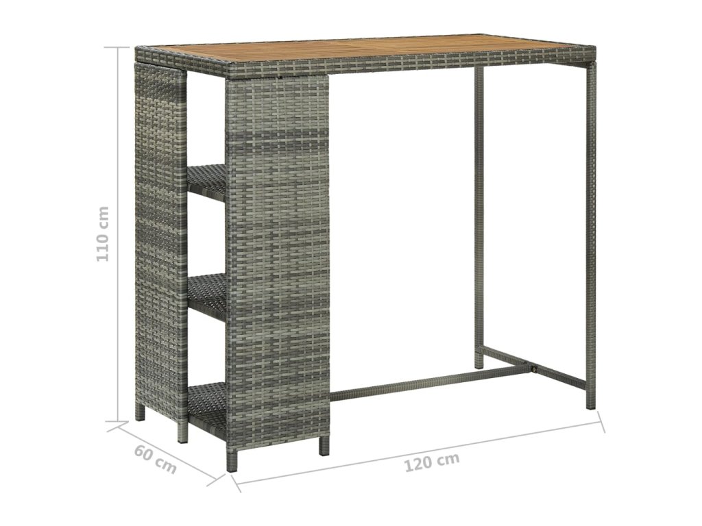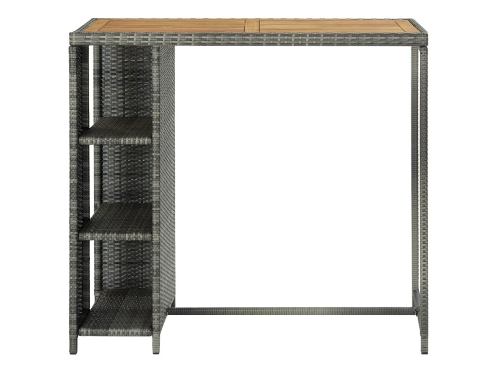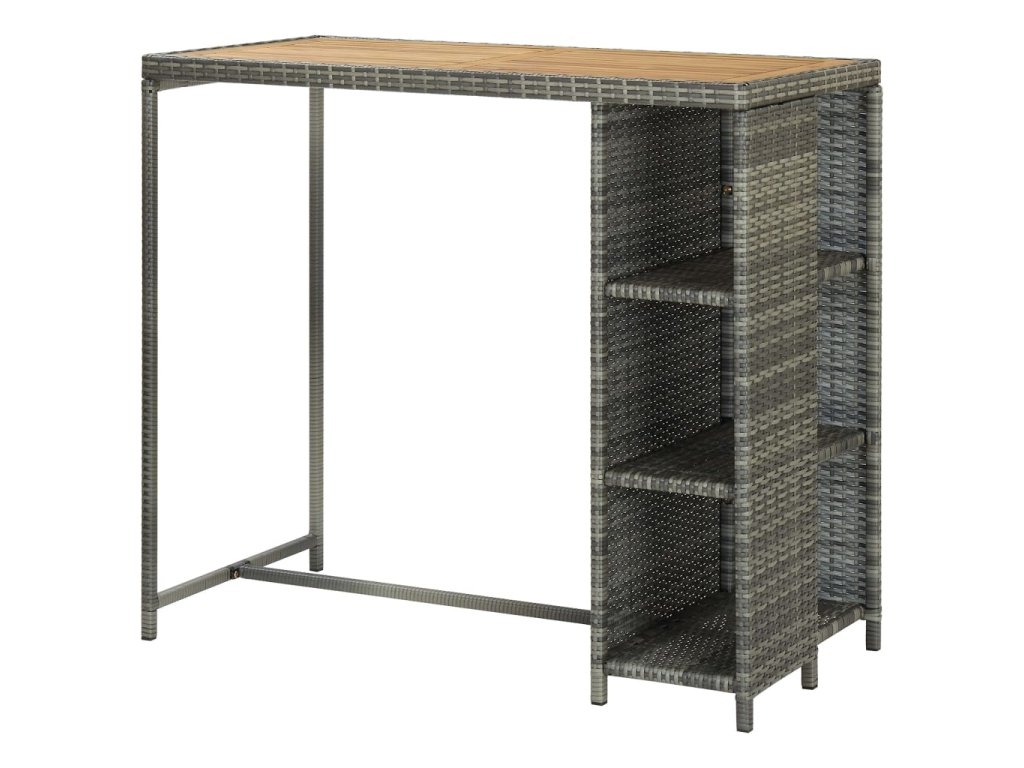Tento bistro stolek je vyrobený z PE ratanu a ocelového rámu, takže má dlouhou životnost a je stabilní. Robustní stolní deska je vyrobená z masivního akáciového dřeva a je perfektní pro odkládání vašich nápojů a občerstvení. V postranním úložném stojanu jsou 3 police, kam si můžete uložit řadu věcí na dosah ruky. Jídelní stůl má velmi lehkou konstrukci, takže se snadno přemisťuje.