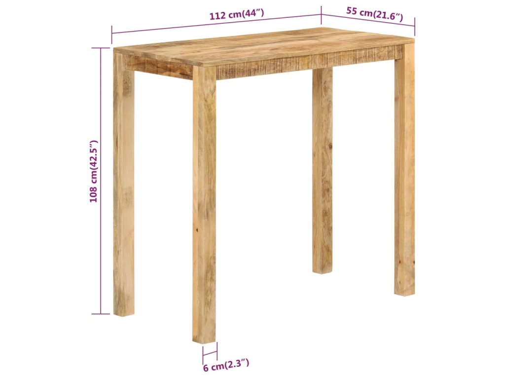 - Masivní mangovníkové dřevo: Tento hospodský stůl je vyroben z masivního mangovníkového dřeva, tvrdého dřeva s hustou strukturou. Masivní mangovníkové dřevo má nejen dostatečnou pevnost unést značnou váhu, ale také skvěle odolává opotřebení.