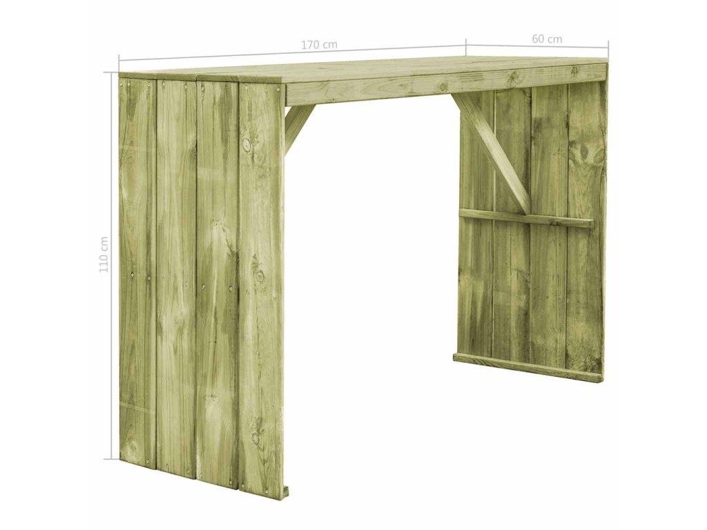 Barový stůl je vyroben z vysoce kvalitní impregnované borovice. Je tudíž vysoce odolný, nepodléhá hnilobě a výborně se hodí na venkovní použití. Snadno ho očistíte navlhčeným hadříkem. Sestavení stolu je jednoduché.
