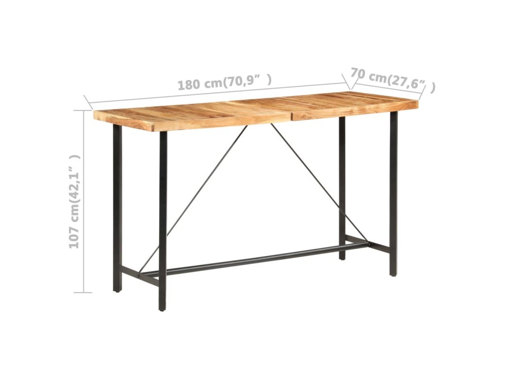 Barový stůl je vyrobený z masivního akáciového dřeva, které je odolné, stabilní a snadno se čistí. Vzhledem k ručnímu zpracování a krásné kresbě dřeva je každý kus nábytku jedinečný a lehce se liší od ostatních. Silné ocelové nohy zaručují výtečnou stabilitu a odolnost tohoto barového stolu a podtrhují jeho velkolepý industriální styl. Sestavení tohoto barového stolu je jednoduché.