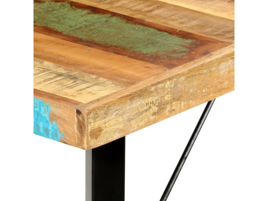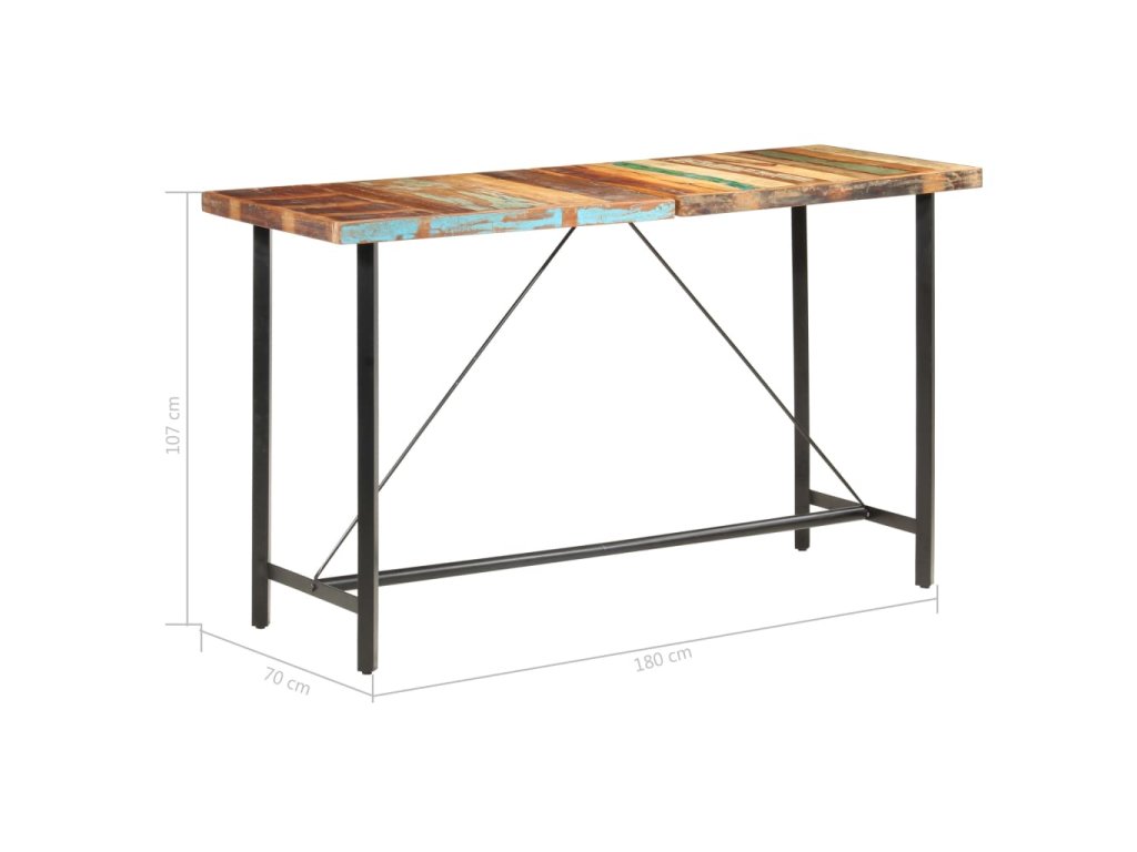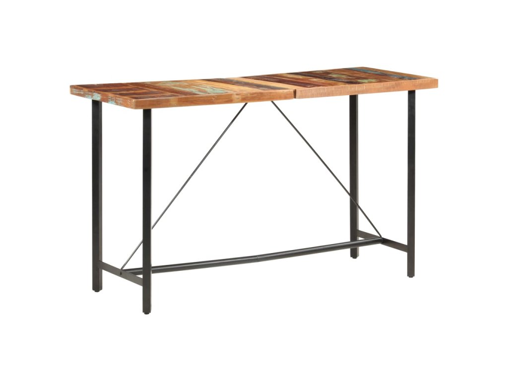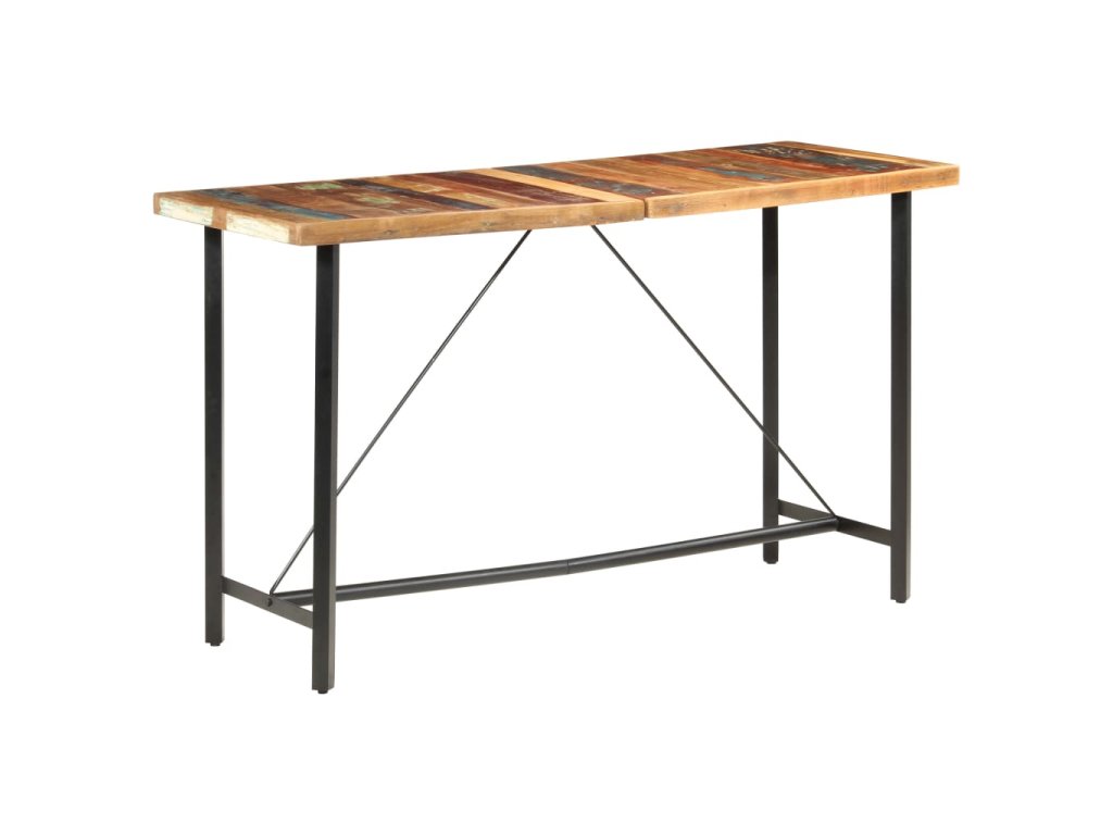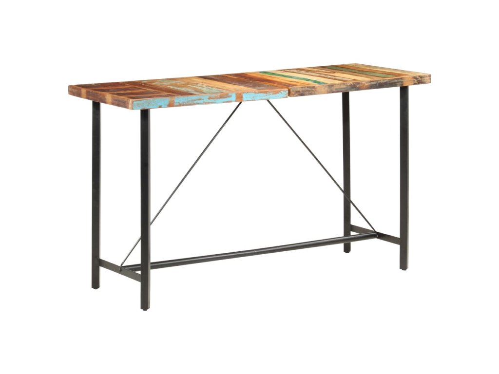 Barový stůl je vyrobený z masivního recyklovaného dřeva, což znamená, že má vlastnosti různých dřevin, jako jsou teak, mangovník, akácie a další. Recyklované dřevo je nejen pevné, stabilní a odolné, ale zároveň také krásně vypadá. Známky opotřebení dodávají každému stolu na jedinečnosti a ocelová konstrukce přispívá k jeho neobyčejnému industriálnímu stylu. Každá fáze výrobního procesu je prováděná s největší pečlivostí, ať už jde o rekombinaci, leštění, natírání anebo lakování. Sestavení barového stolu je snadné.