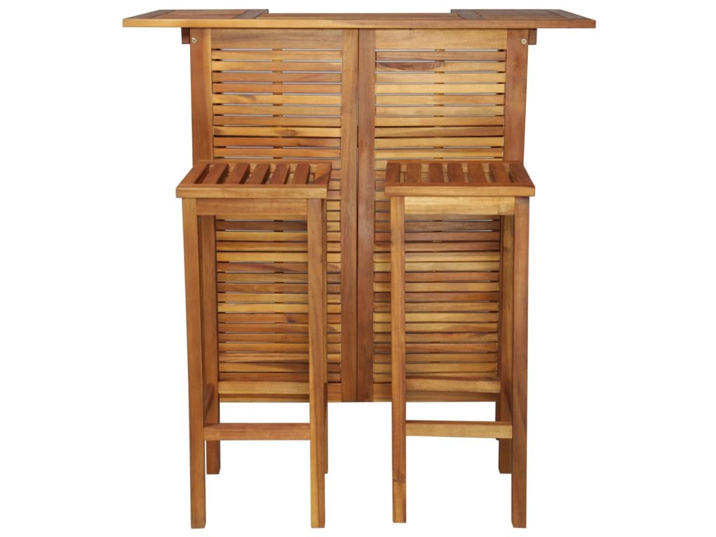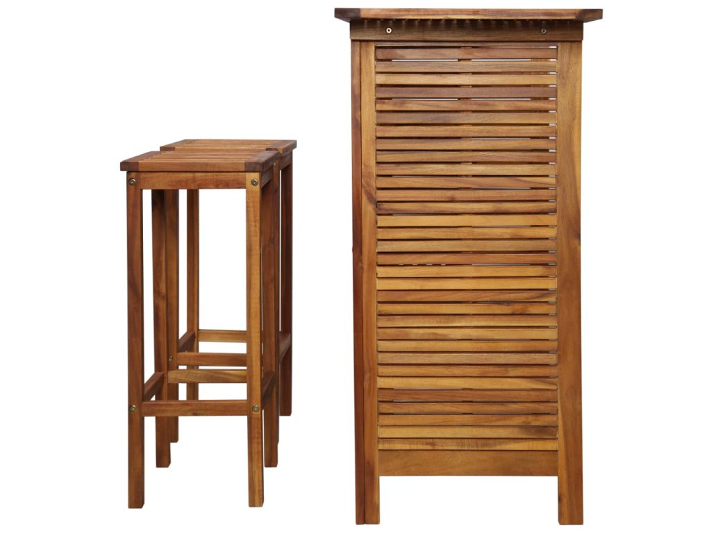 Barový stůl a židle jsou vyrobeny z masivního akáciového dřeva. Jedná se o tropické tvrdé dřevo, které je stabilní, hodně toho vydrží a je odolné vůči povětrnostním vlivům. Olejová povrchová úprava dodává barovému stolu i stoličkám hřejivý odstín a usnadňuje jejich údržbu.