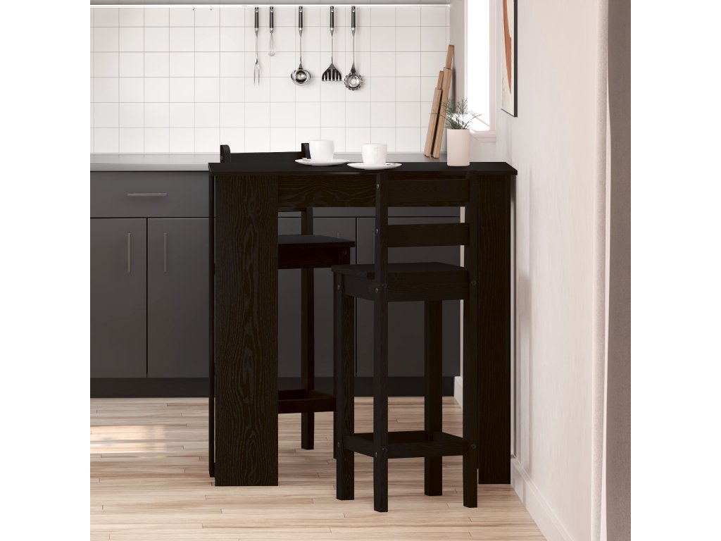 Tento černý dubový barový stůl je stylovým a praktickým kouskem, jak si užít jídlo ve vaší kuchyni nebo jídelně. Jeho moderní design skvěle padne do jakéhokoli interiéru. Díky čistým liniím a hladkému povrchu se stůl hodí k vašemu stylu a nabízí dost místa na jídlo nebo zábavu s přáteli.