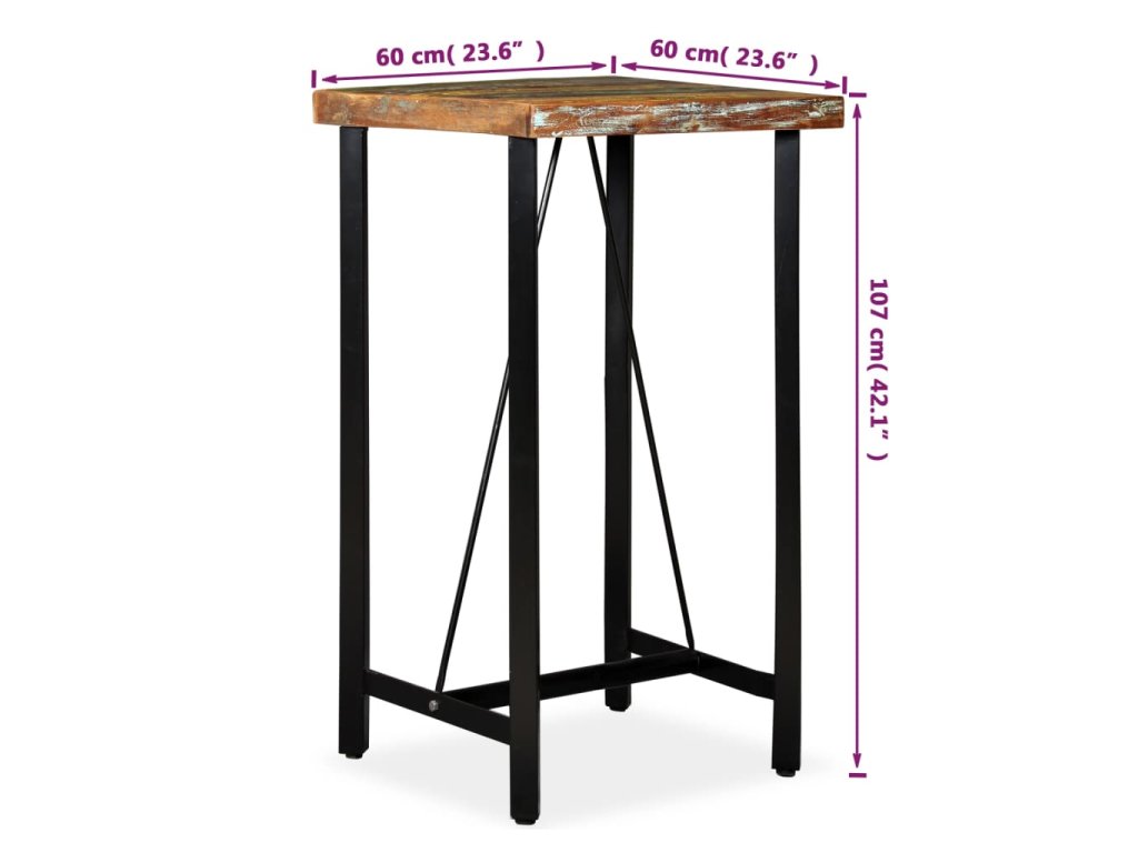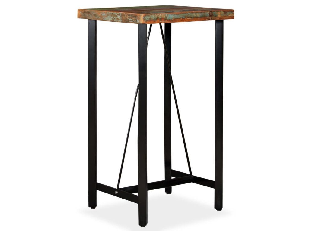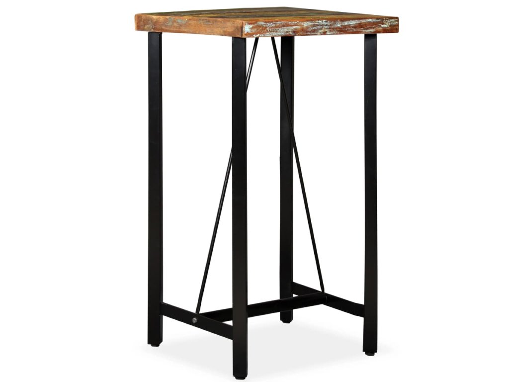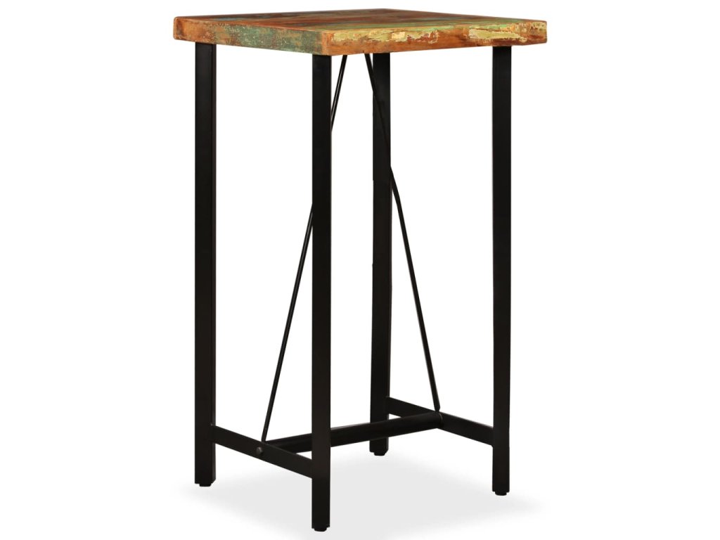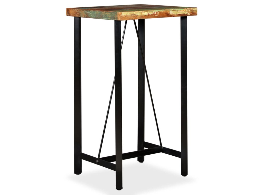 Tento barový stůl je vyrobený z masivního recyklovaného dřeva, což znamená, že má vlastnosti různých dřevin, jako je teak, mangovníkové dřevo, akácie atd. Recyklované dřevo je pevné, stabilní, odolné a zároveň krásné. Znaky opotřebení a řemeslné zpracování dodávají každému kusu jedinečnost. Celý kus byl přitom vyroben ručně. Stůl má pevné nohy z oceli, takže je velmi stabilní a hodně toho vydrží. Nohy navíc podtrhují jeho industriální styl.