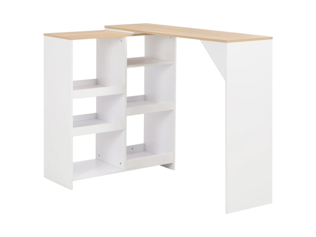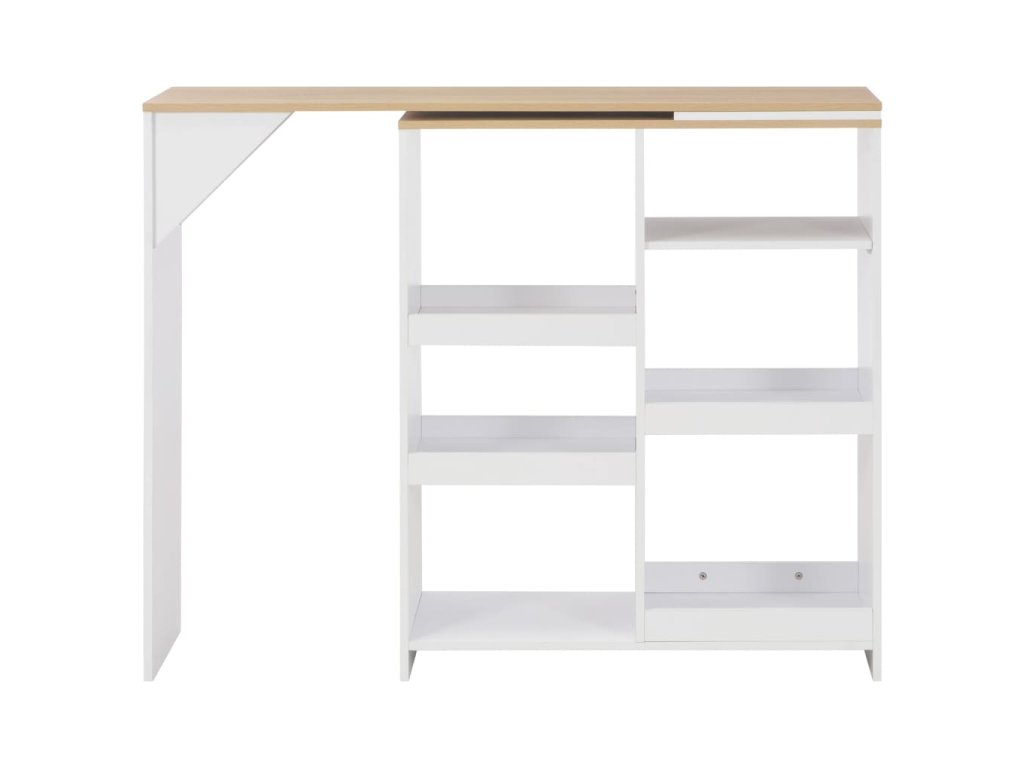 Náš barový stůl se výborně hodí do místností s omezeným prostorem, jelikož disponuje pohyblivým regálem. Se svým moderním designem se navíc ve vaší kuchyni nebo jídelně stane stylovým doplňkem.