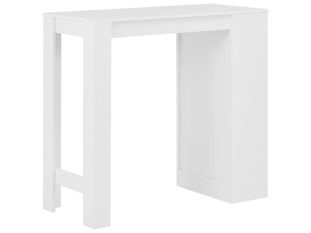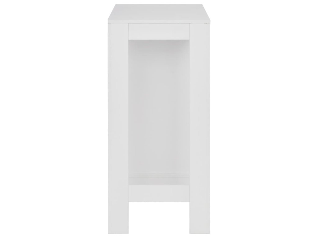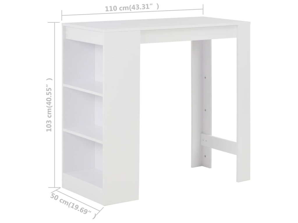 Úložný regál se 3 policemi vám pomůže ušetřit spoustu místa, kam si můžete naskládat láhve vína a další potřeby. Robustní dřevotříska zajišťuje, že je konstrukce odolná, pevná a snadno se čistí. Vzhledem ke 2 silným nohám a postrannímu regálu má stůl velmi dobrou stabilitu. Uvidíte, jak pohodlně se vám u našeho krásného barového stolu bude sedět se skleničkou vína nebo šálkem kávy.