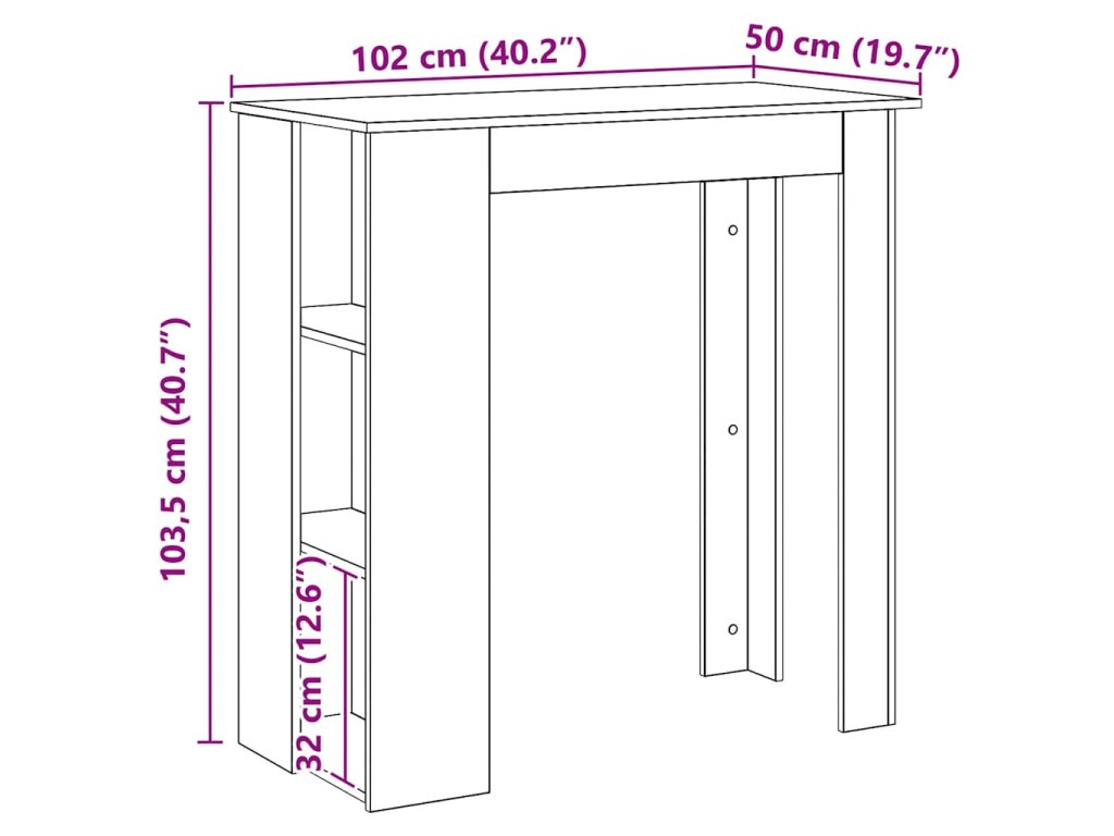 - Dostatek úložného prostoru: Tento barový stůl je opatřen 3 policemi a poskytuje dostatek prostoru pro uložení lahví vína nebo jiných předmětů.
