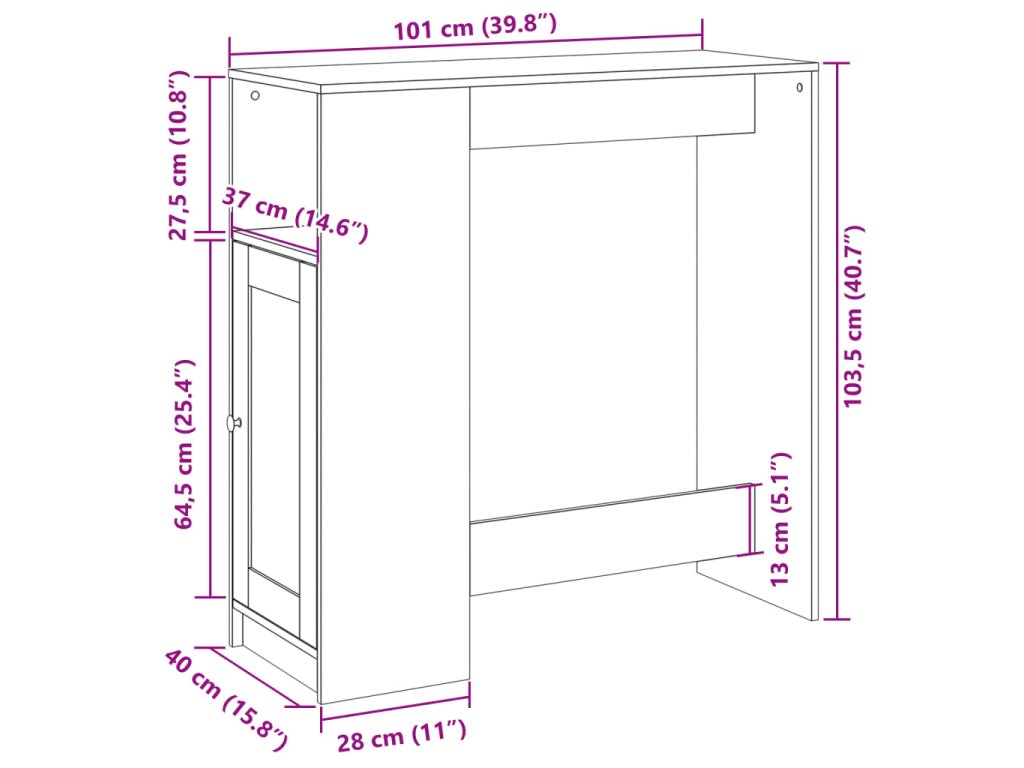 - Celkové rozměry: 101 x 40 x 103,5 cm (Š x H x V)
