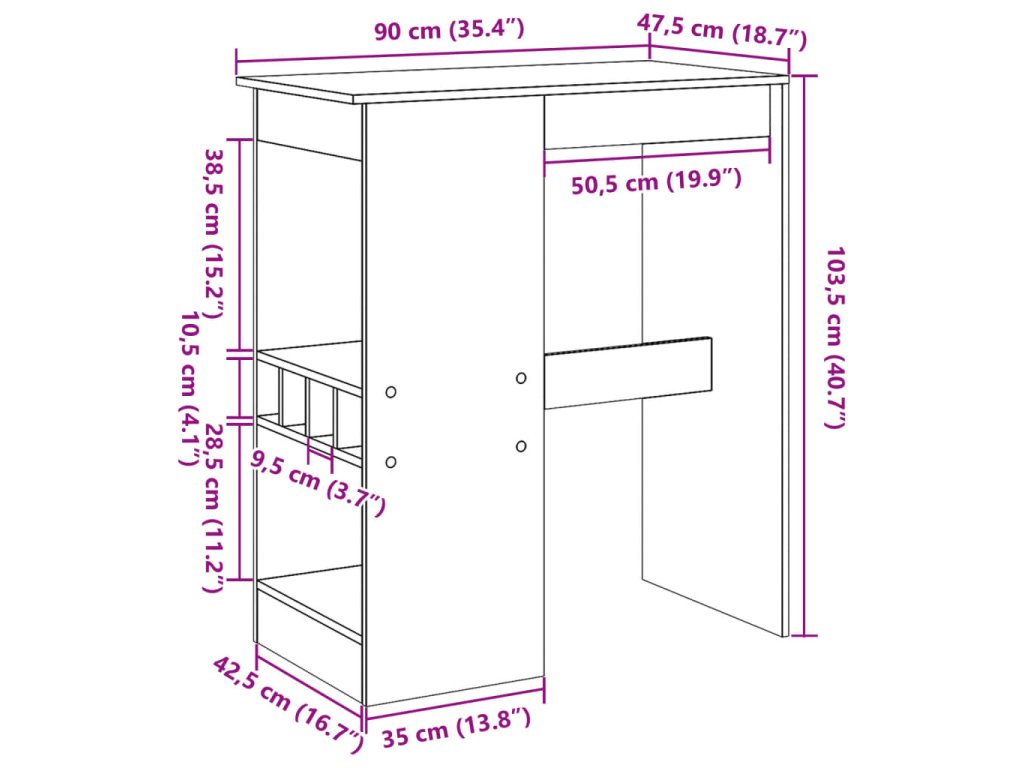 - Celkové rozměry: 90 x 47,5 x 103,5 cm (Š x H x V)