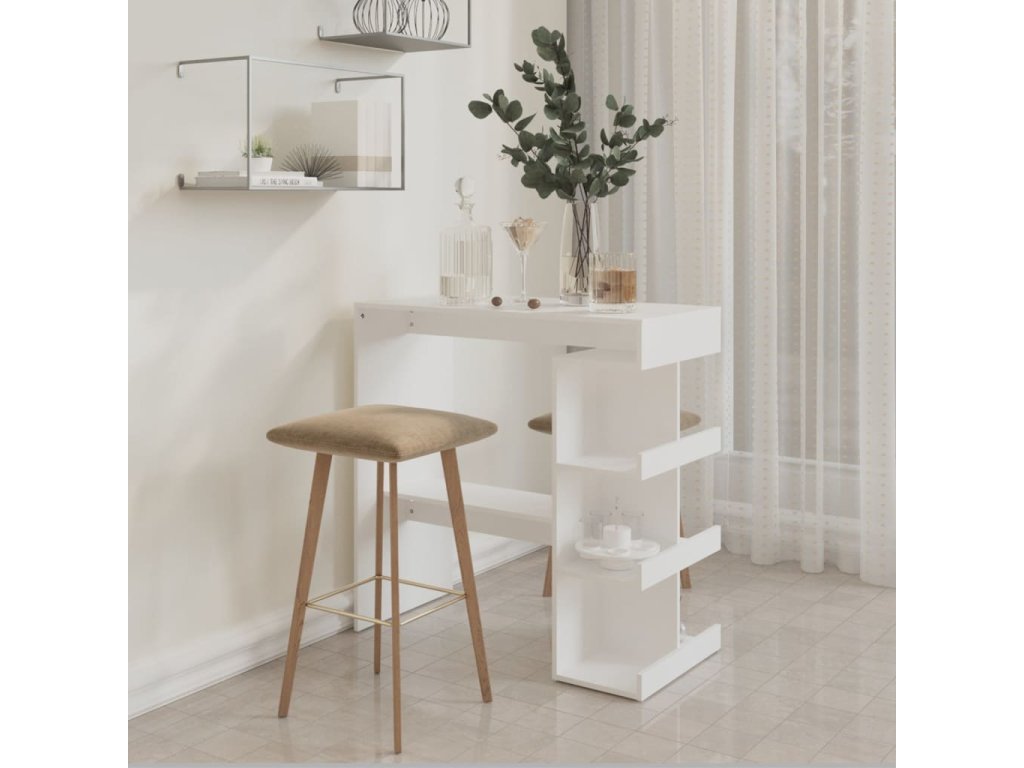 Barový stůl vybavený 3 úložnými poličkami a poskytuje dostatek prostoru pro uložení lahví vína nebo jiných předmětů. Jeho konstrukce je odolná, stabilní a snadno se čistí. Pro maximální pohodlí nabízí i opěrku nohou.