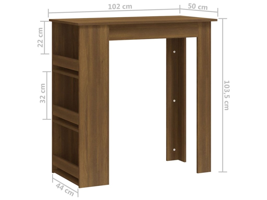 Barový stůl je vybavený 3 úložnými poličkami a poskytuje dostatek prostoru pro uložení lahví vína nebo jiných předmětů. Jeho konstrukce je odolná, stabilní a snadno se čistí.