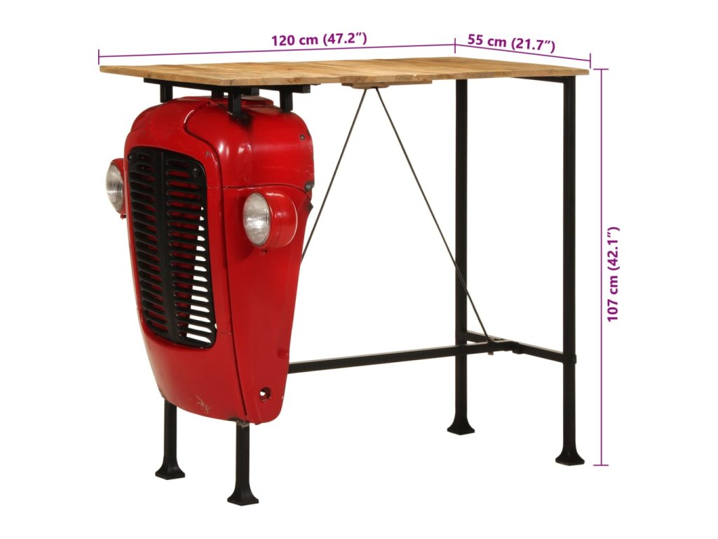 Tento dřevěný barový stůl s motivem traktoru v rustikálním, industriálním stylu bude skvělým doplňkem vaší kuchyně nebo jídelny!