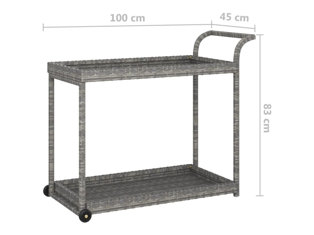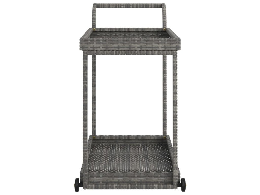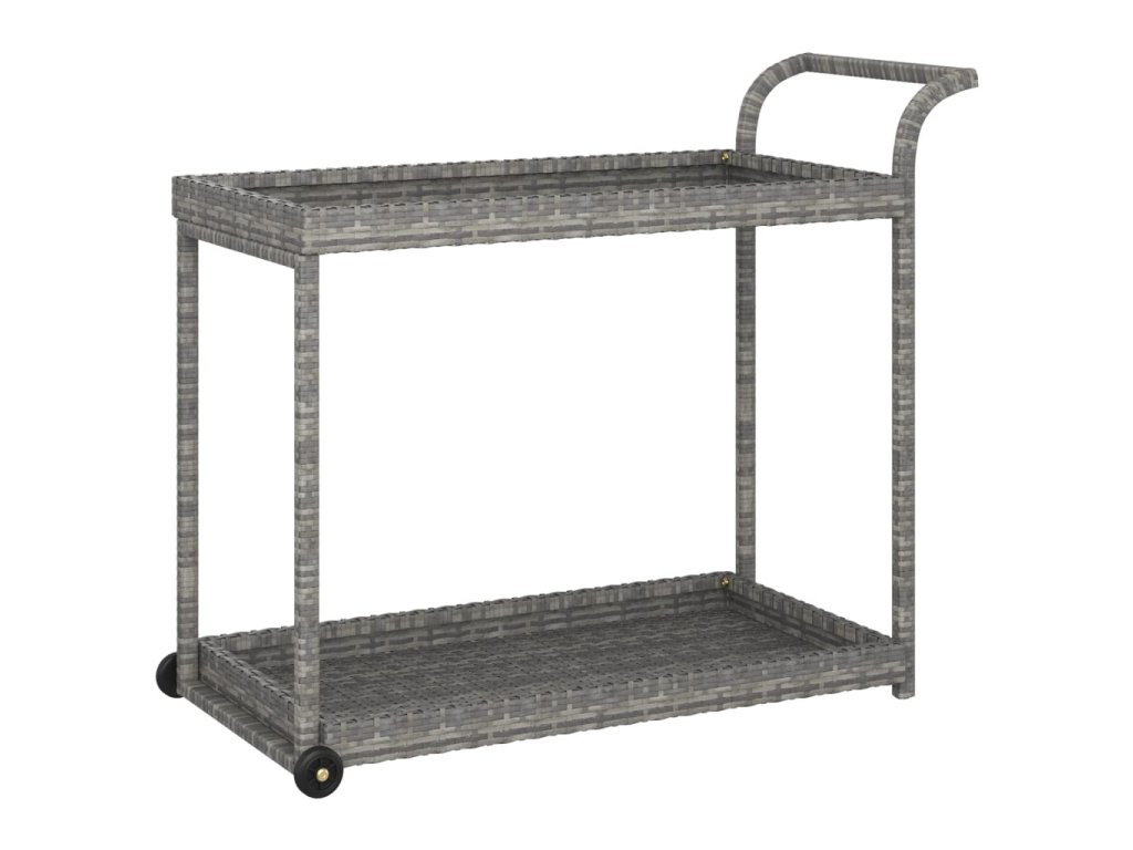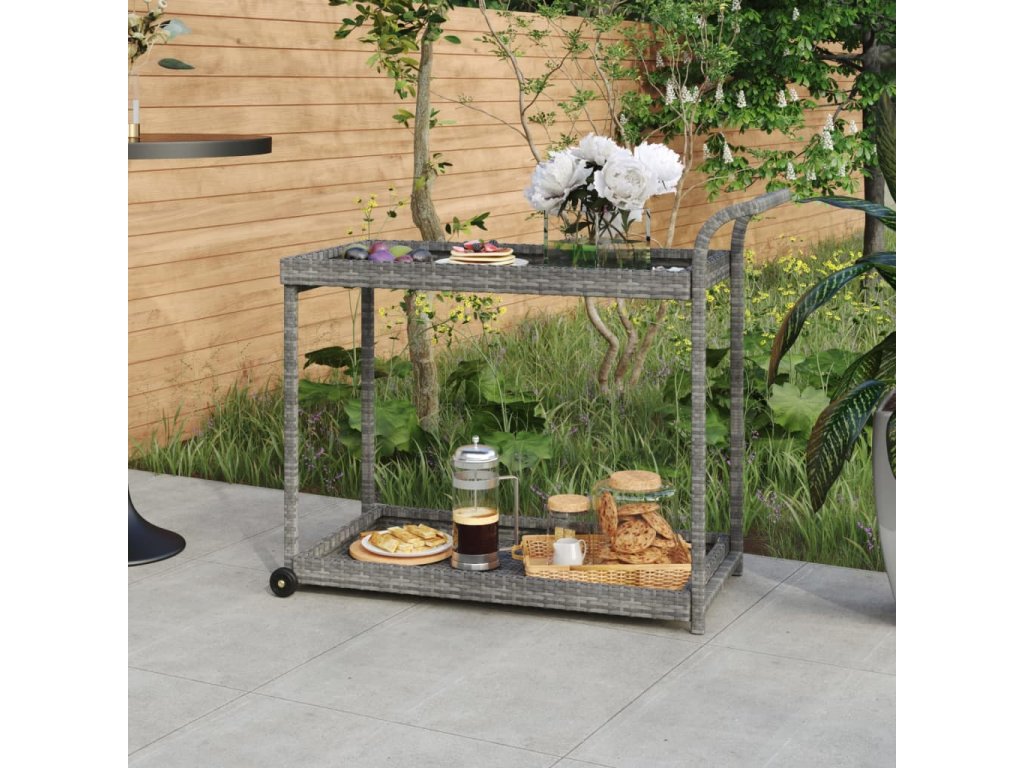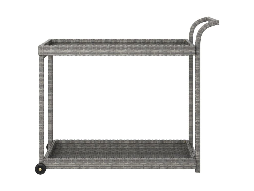 Tento vozík je vyroben z polyratanu, je odolný vůči povětrnostním vlivům a vyžaduje minimální údržbu. Poskytuje dostatečný úložný prostor pro umístění nápojů, lahodných pokrmů, ovoce atd. Ocelový rám s práškovým nástřikem zajišťuje stabilitu a odolnost vozíku. Pomocí rukojeti na horní straně můžete vozík snadno tlačit nebo táhnout za sebou. Disponuje hladce se otáčejícími kolečky, takže lze s vozíkem bez námahy pohybovat.