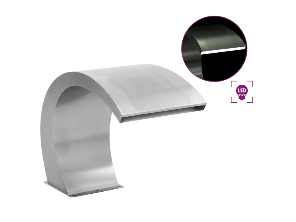 Produkt je vyrobený z prvotřídní nerezové oceli a je odolný vůči chloru a má velmi dlouhou životnost. Je speciálně navržený tak, aby zaručoval nepřetržitý a rovnoměrný průtok vody. Kaskáda je doplněná LED světly, jejichž zástrčka je součástí balení.
