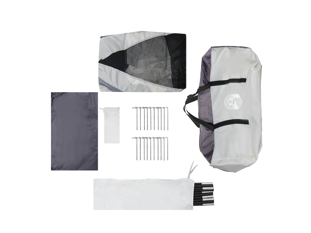 - Lehké a přenosné: Lehká skládací konstrukce umožňuje stan snadno sbalit a uložit do přiložené přenosné tašky, což vám usnadní přepravu.