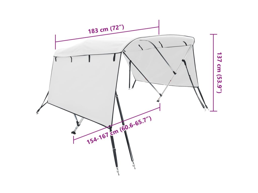 Tato bimini stříška se 3 oblouky a bočnicemi hraje důležitou roli při ochraně proti přímému slunci a nepříznivému počasí, jako jsou kroupy nebo déšť.