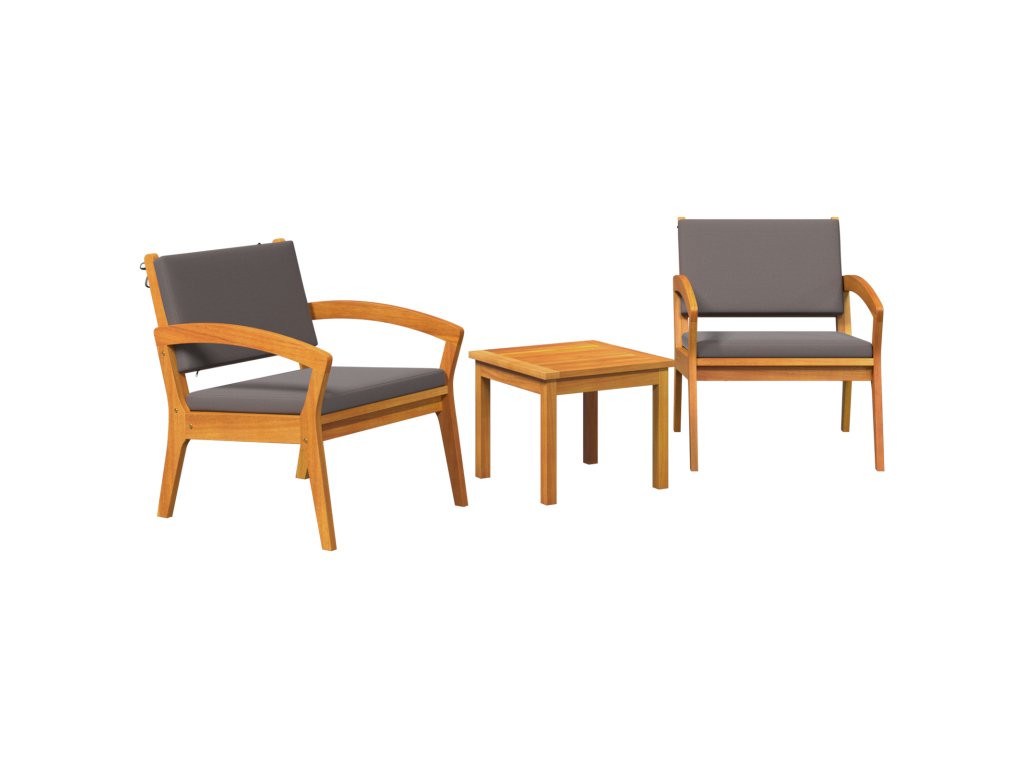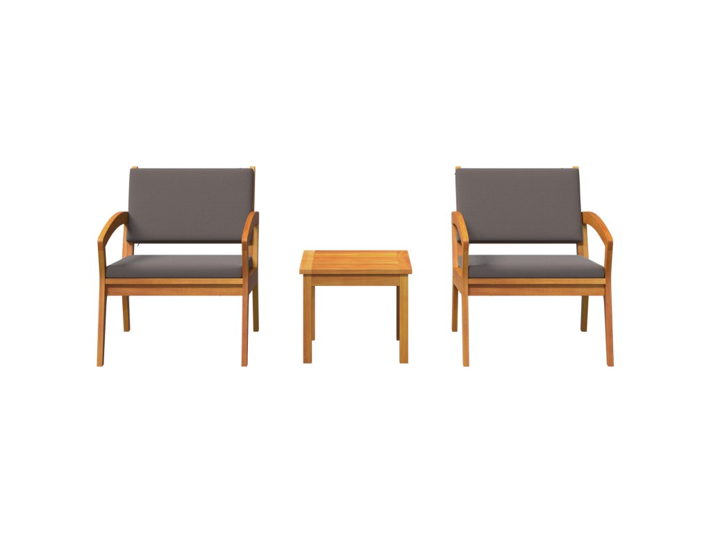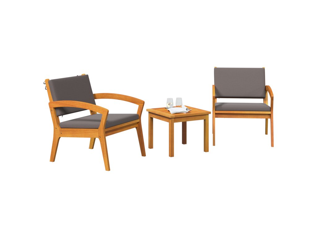 Tento 3dílný bistro set je skvělou kombinací stylu a pohodlí, ideální pro zábavu uvnitř i venku. Vyrobeno z kvalitního akáciového dřeva s tmavě šedými polštáři, přináší příjemnou atmosféru, ať už oživuješ svůj balkon nebo zahradu.