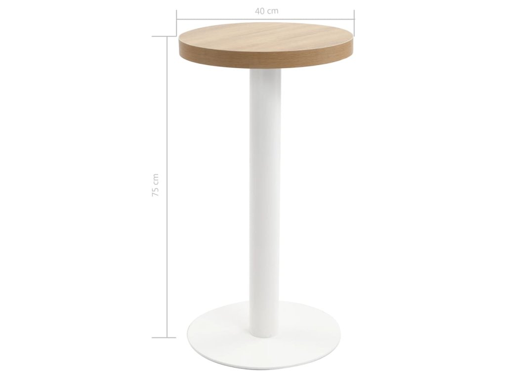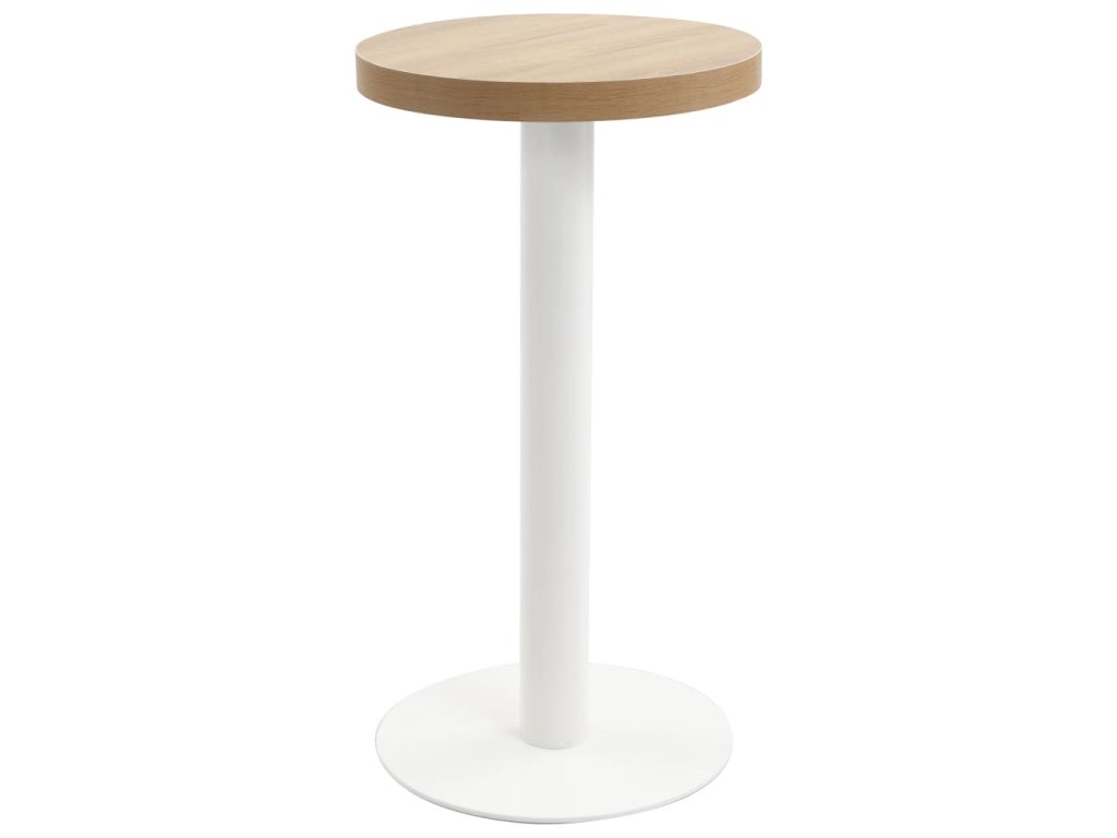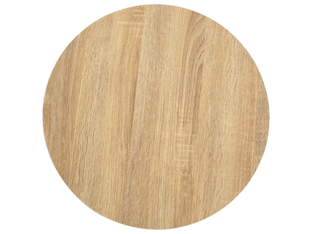 Horní deska stolu je vyrobená z MDF se vzorem dřevěné kresby a podpírá ji ocelová noha se základnou. Snadno ji očistíte vlhkým hadříkem. Stolek skvěle využijete jako samostatný kus nábytku ve svém bydlení, ale i v restauraci, kavárně nebo baru.