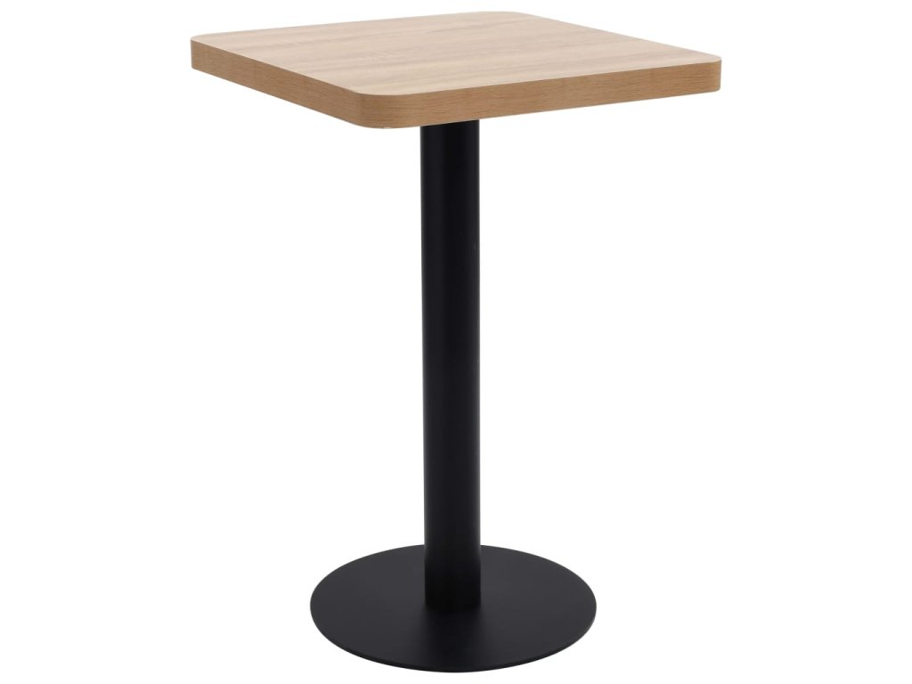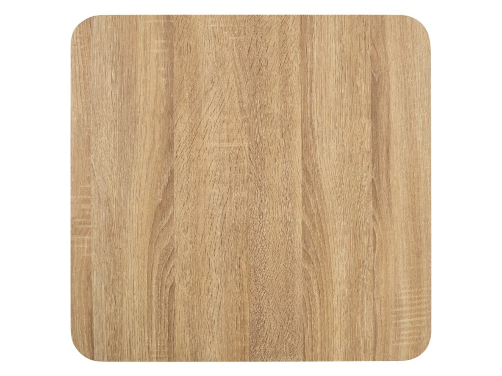 Horní deska stolu je vyrobená z MDF se vzorem dřevěné kresby a podpírá ji ocelová noha se základnou. Snadno ji očistíte vlhkým hadříkem. Stolek skvěle využijete jako samostatný kus nábytku ve svém bydlení, ale i v restauraci, kavárně nebo baru.