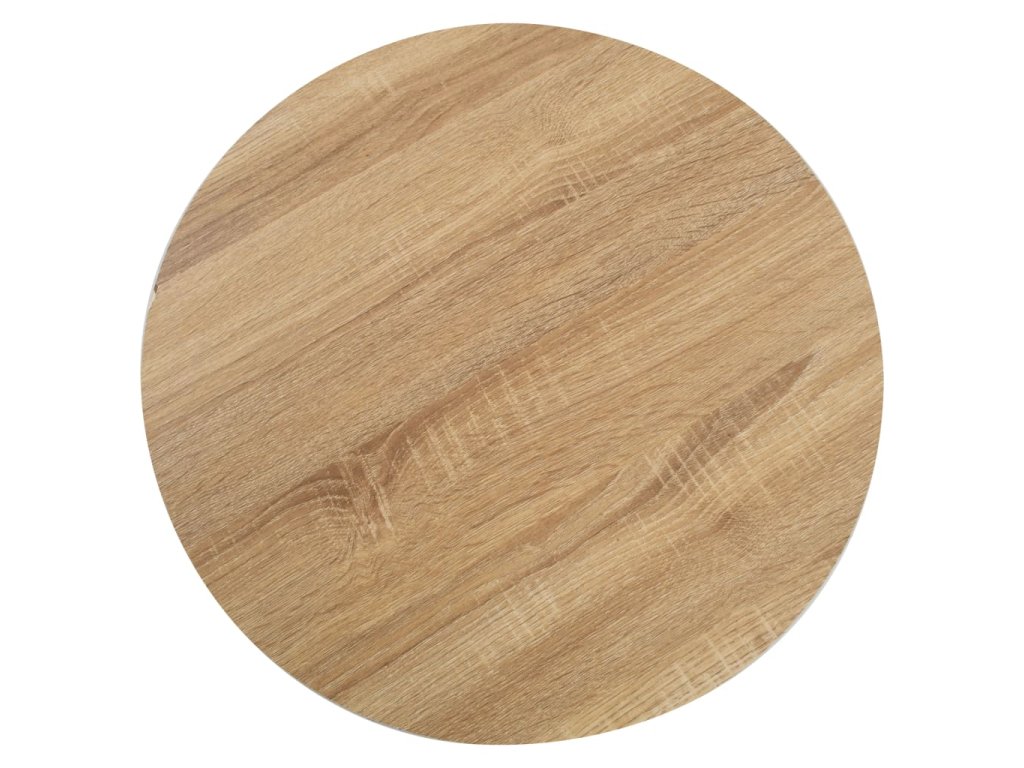 Horní deska stolu je vyrobená z MDF se vzorem dřevěné kresby a podpírá ji ocelová noha se základnou. Snadno ji očistíte vlhkým hadříkem. Stolek skvěle využijete jako samostatný kus nábytku ve svém bydlení, ale i v restauraci, kavárně nebo baru.