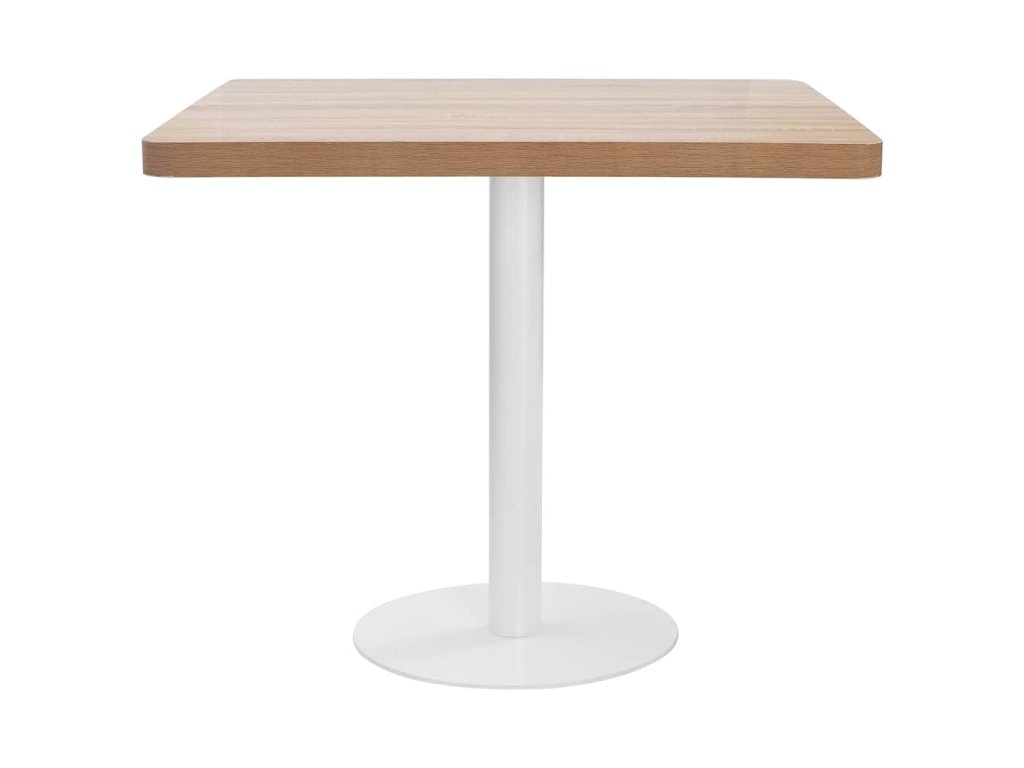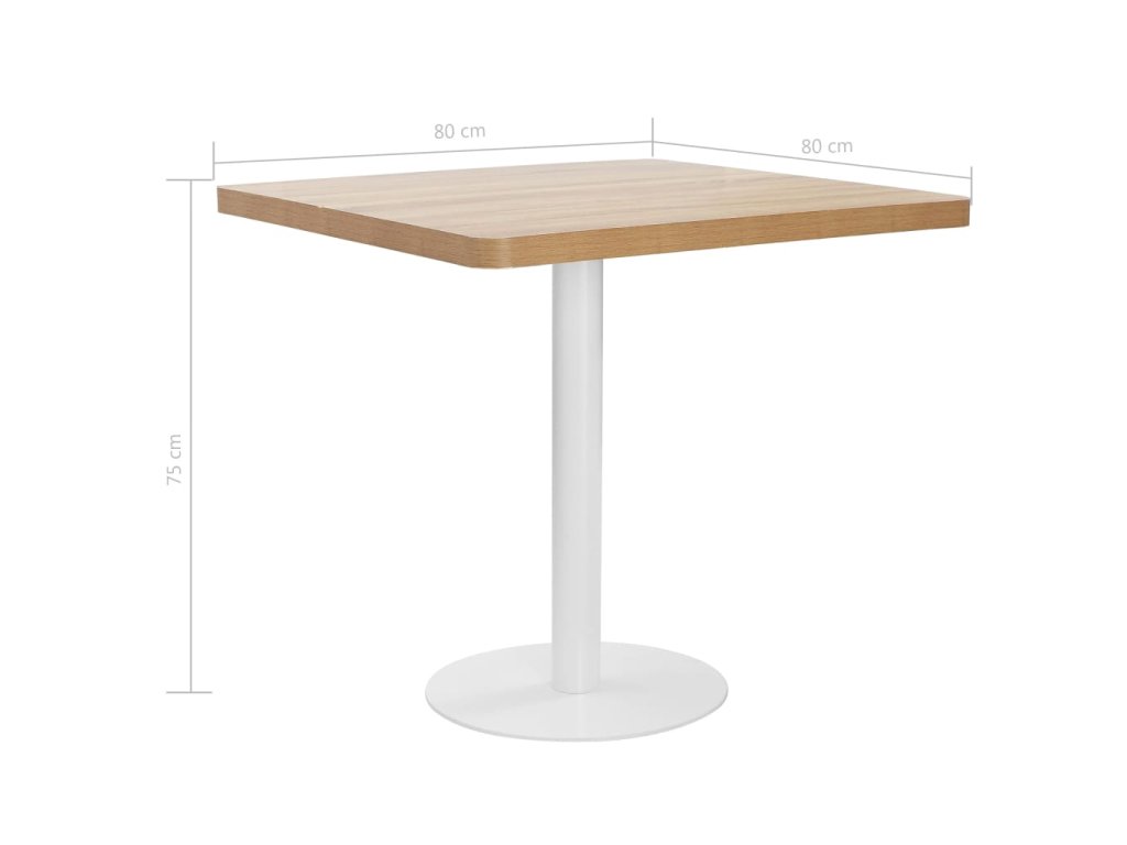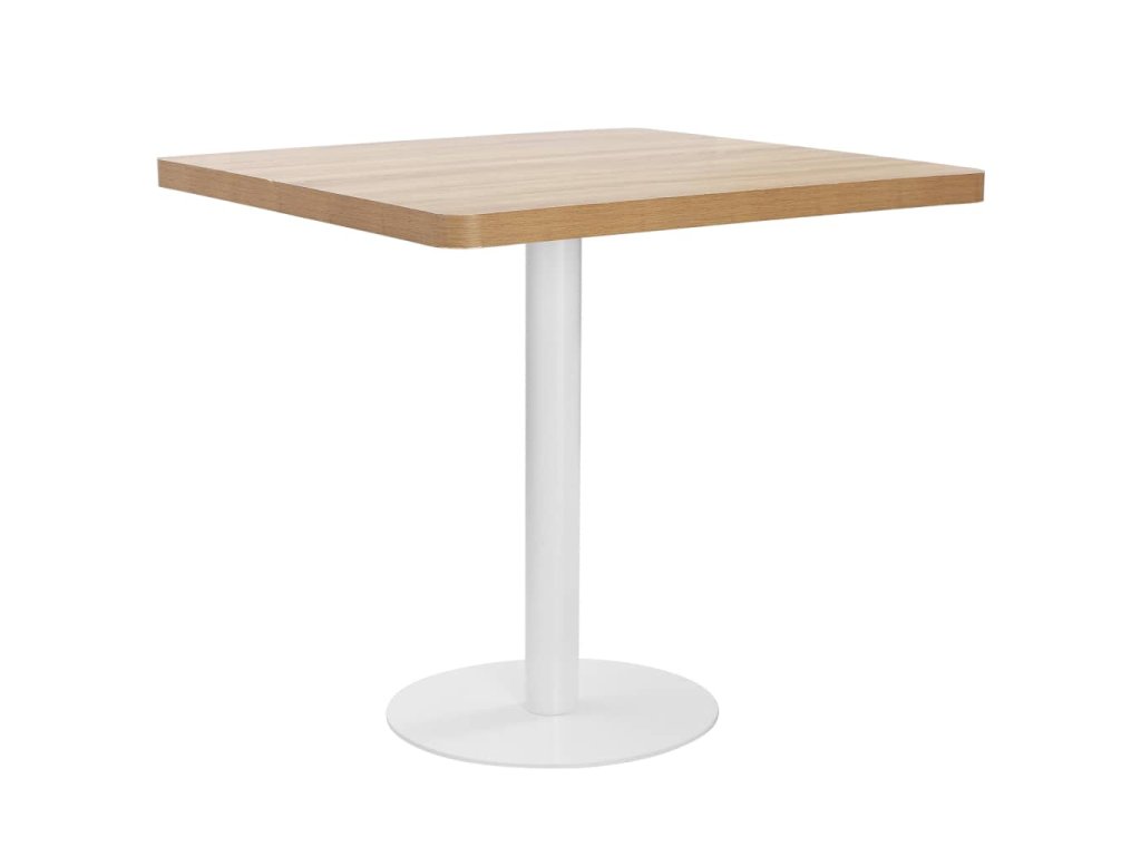Horní deska stolu je vyrobená z MDF se vzorem dřevěné kresby a podpírá ji ocelová noha se základnou. Snadno ji očistíte vlhkým hadříkem. Stolek skvěle využijete jako samostatný kus nábytku ve svém bydlení, ale i v restauraci, kavárně nebo baru.