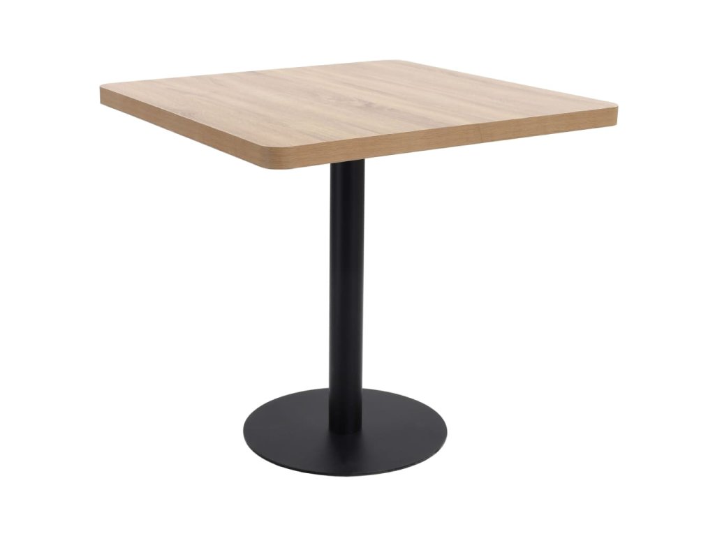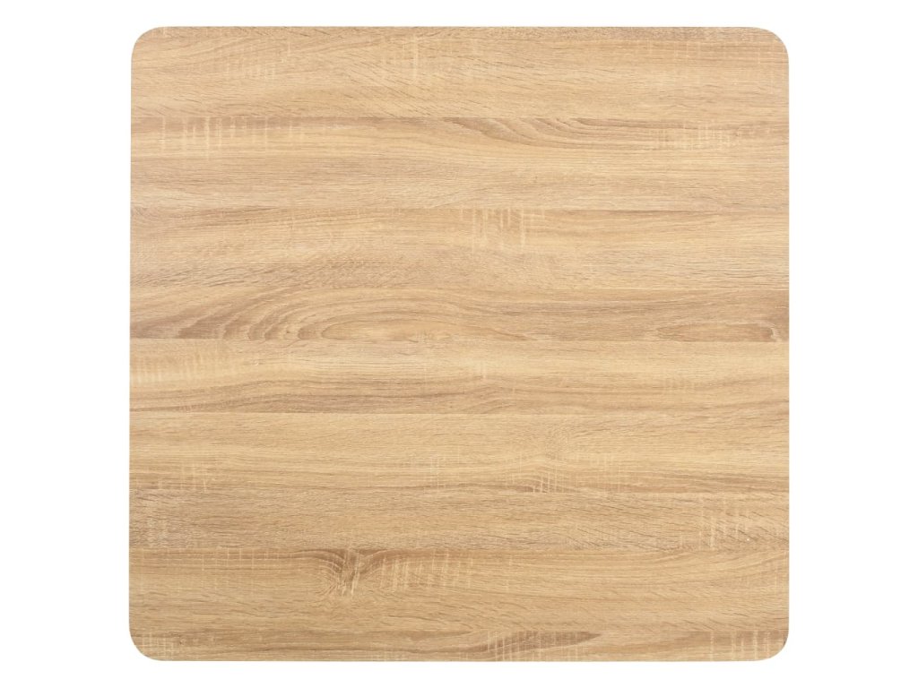 Horní deska stolu je vyrobená z MDF se vzorem dřevěné kresby a podpírá ji ocelová noha se základnou. Snadno ji očistíte vlhkým hadříkem. Stolek skvěle využijete jako samostatný kus nábytku ve svém bydlení, ale i v restauraci, kavárně nebo baru.