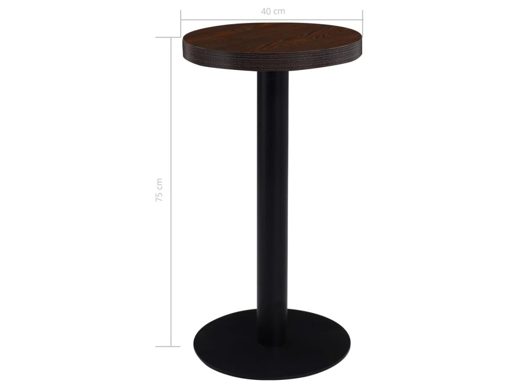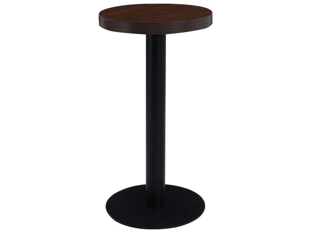 Horní deska stolu je vyrobená z MDF se vzorem dřevěné kresby a podpírá ji ocelová noha se základnou. Snadno ji očistíte vlhkým hadříkem. Stolek skvěle využijete jako samostatný kus nábytku ve svém bydlení, ale i v restauraci, kavárně nebo baru.