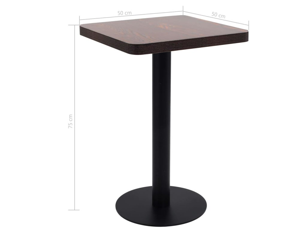 Horní deska stolu je vyrobená z MDF se vzorem dřevěné kresby a podpírá ji ocelová noha se základnou. Snadno ji očistíte vlhkým hadříkem. Stolek skvěle využijete jako samostatný kus nábytku ve svém bydlení, ale i v restauraci, kavárně nebo baru.