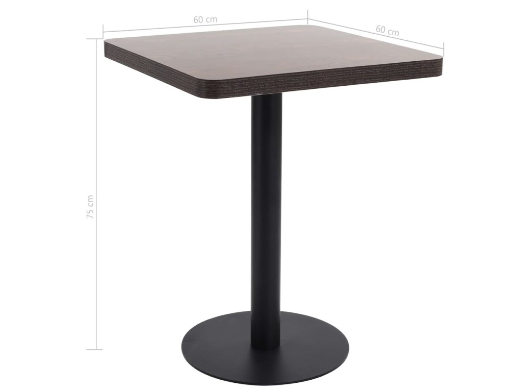 Horní deska stolu je vyrobená z MDF se vzorem dřevěné kresby a podpírá ji ocelová noha se základnou. Snadno ji očistíte vlhkým hadříkem. Stolek skvěle využijete jako samostatný kus nábytku ve svém bydlení, ale i v restauraci, kavárně nebo baru.