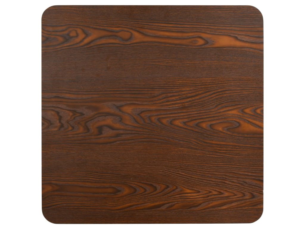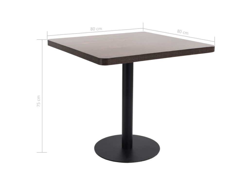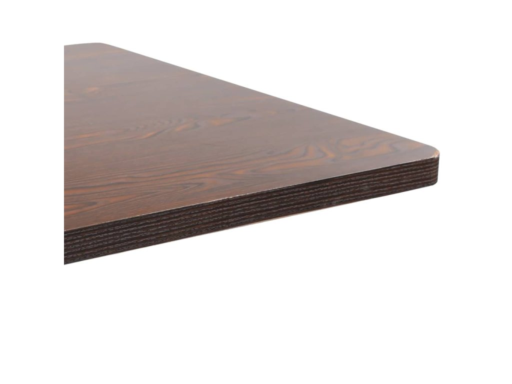 Deska stolu je vyrobena z MDF se vzorem struktury dřeva a je podepřena ocelovou nohou a základnou. Snadno se čistí vlhkým hadříkem. Použijte jej jako kus nábytku ve svém interiéru, restauraci, kavárně nebo baru.