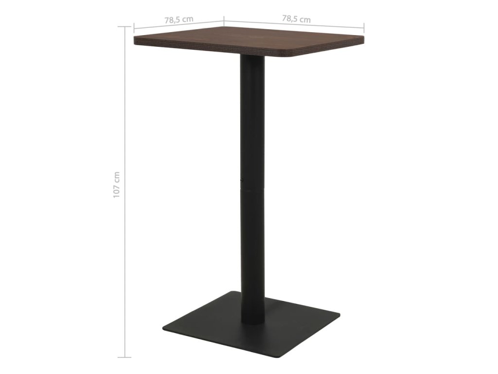Horní deska stolu je vyrobená z melaninové dřevotřísky a je upevněná na práškově lakované ocelové noze se stabilní základnou. Barový stolek se snadno čistí pouze vlhkým hadříkem. Použijte ho jako samotný kus ve svém interiéru, restauraci, kavárně nebo baru.