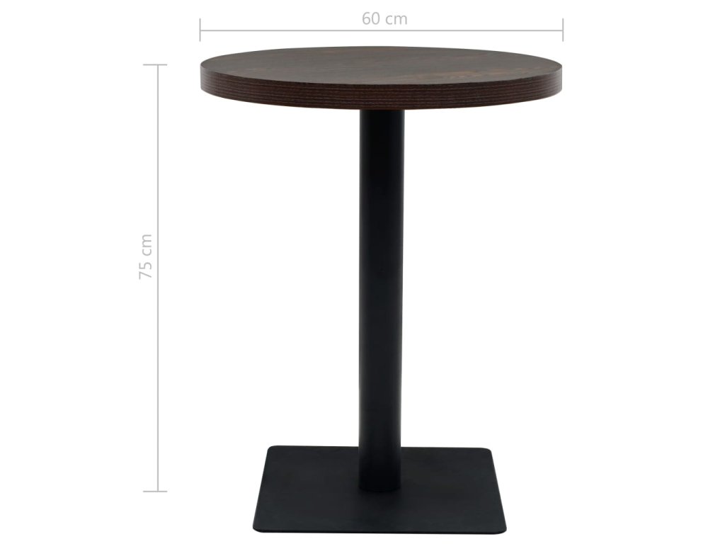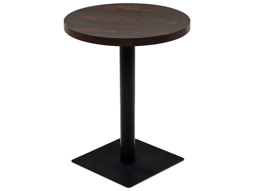 Horní deska stolu je vyrobena z MDF s povrchovou zrnitou úpravou a je podepřena ocelovou nohou a základnou. Snadno se čistí pouze vlhkým hadříkem. Použijte jej jako samotný kus ve svém interiéru, restauraci, kavárně nebo baru.