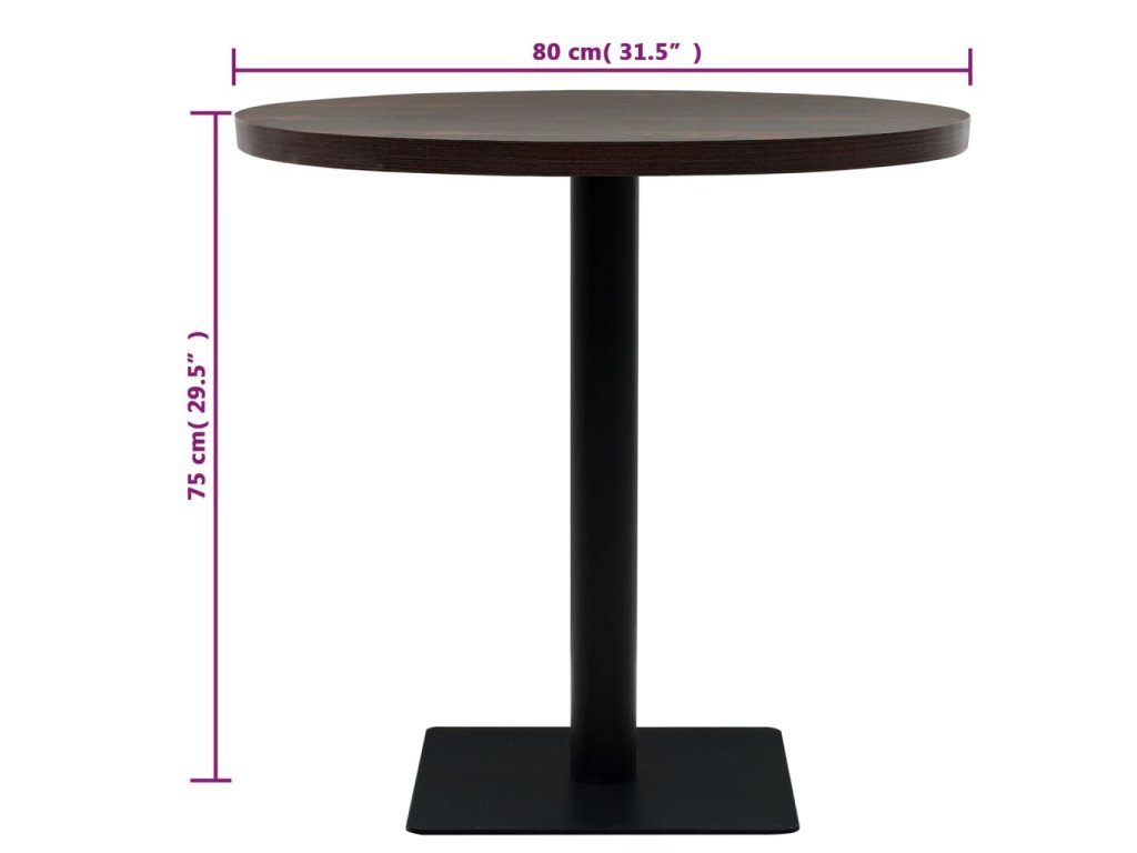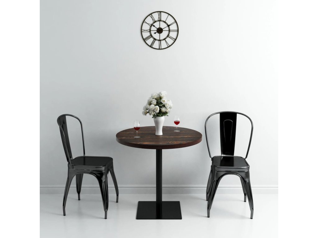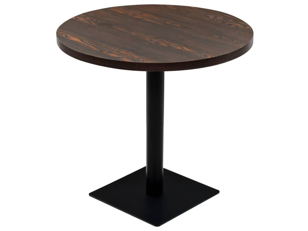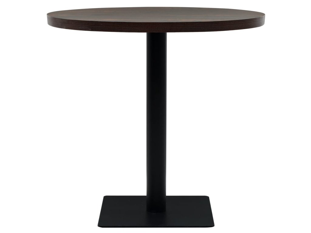 Horní deska stolu je vyrobena z MDF s povrchovou zrnitou úpravou a je podepřena ocelovou nohou a základnou. Snadno se čistí pouze vlhkým hadříkem. Použijte jej jako samotný kus ve svém interiéru, restauraci, kavárně nebo baru.